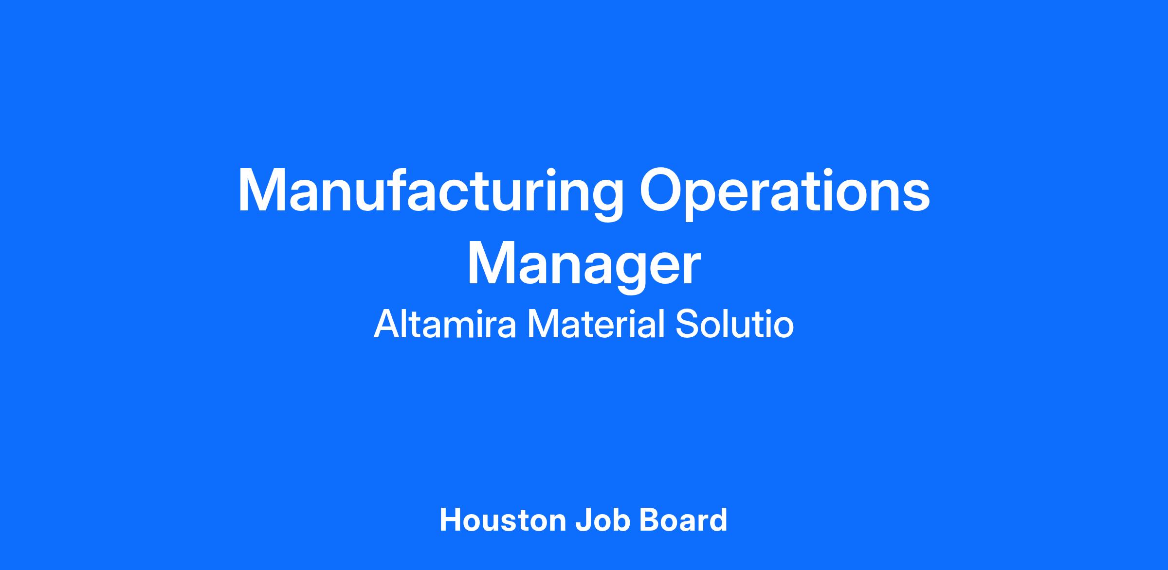 Altamira Material Solutions, an Evantic Company, is seeking a hands-on Manufacturing Operations Manager to lead daily operations within our precision manufacturing facility. This highly visible role is responsible for driving efficiency, quality, and safety while developing a high-performing production team.