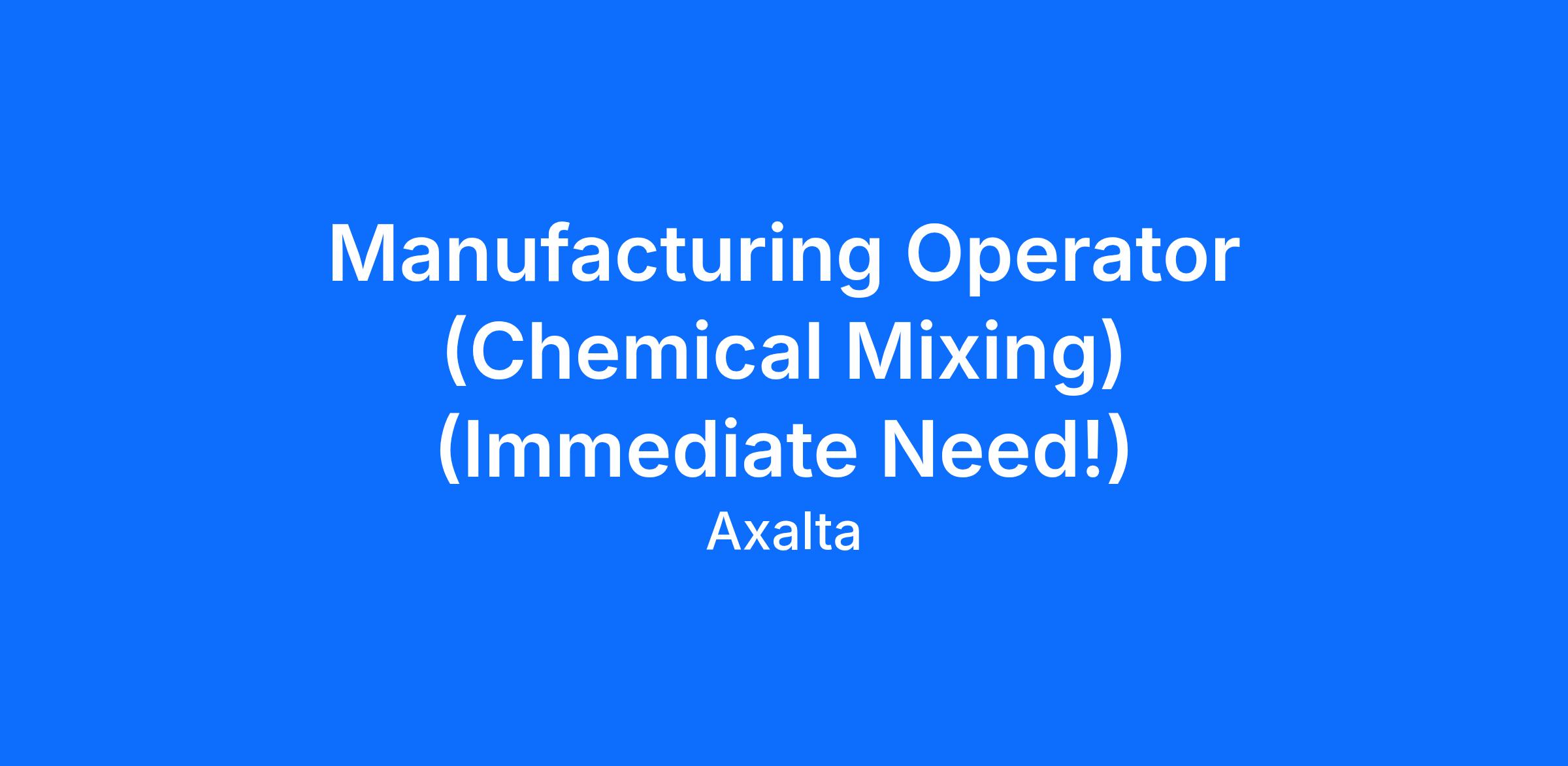 Job Title: Manufacturing Operator (Chemical Mixing)