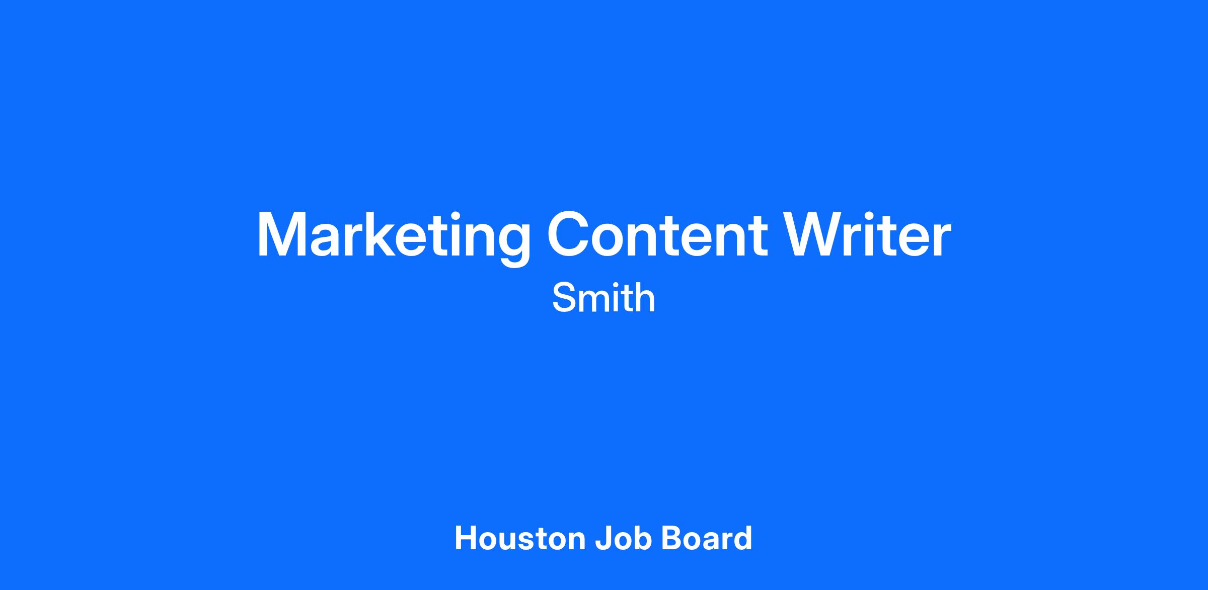 Smith is looking for a talented and experienced Marketing Content Writer to join our dynamic Marketing team. This person will be responsible for creating compelling written content and effectively communicating our brand message to various internal and external target audiences. The ideal candidate should have at least 5-7 years of experience in content creation, preferably within B2B marketing or another highly technical field, and possess excellent storytelling and communication skills.