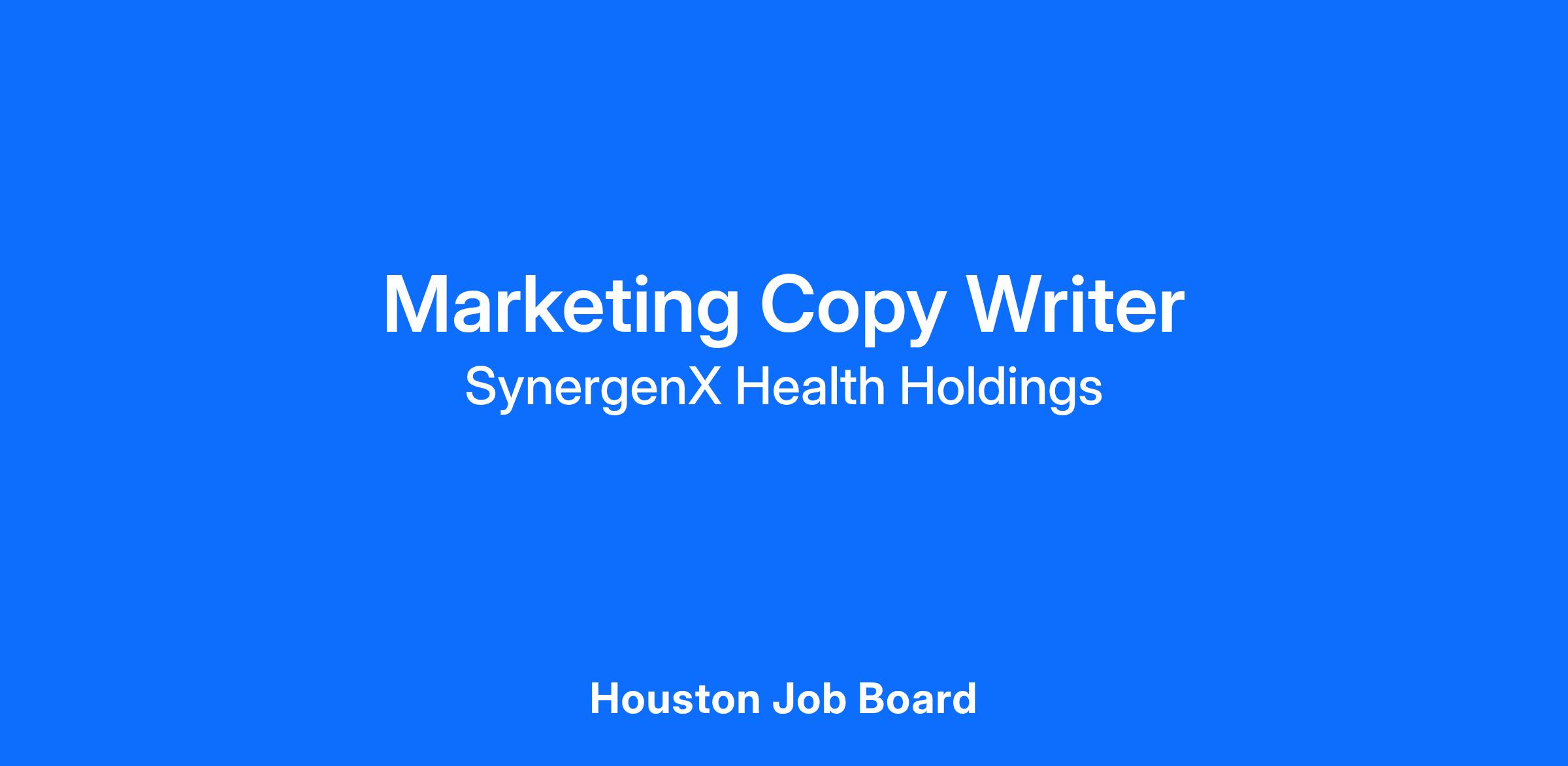 SynergenX, a leader in hormone replacement therapy and wellness, is seeking a talented and versatile Marketing Copy Writer to join our growing team in Northwest Houston, TX. This role is ideal for a creative professional who enjoys crafting compelling content, shaping brand messaging, and supporting a fast-paced healthcare-focused marketing department.