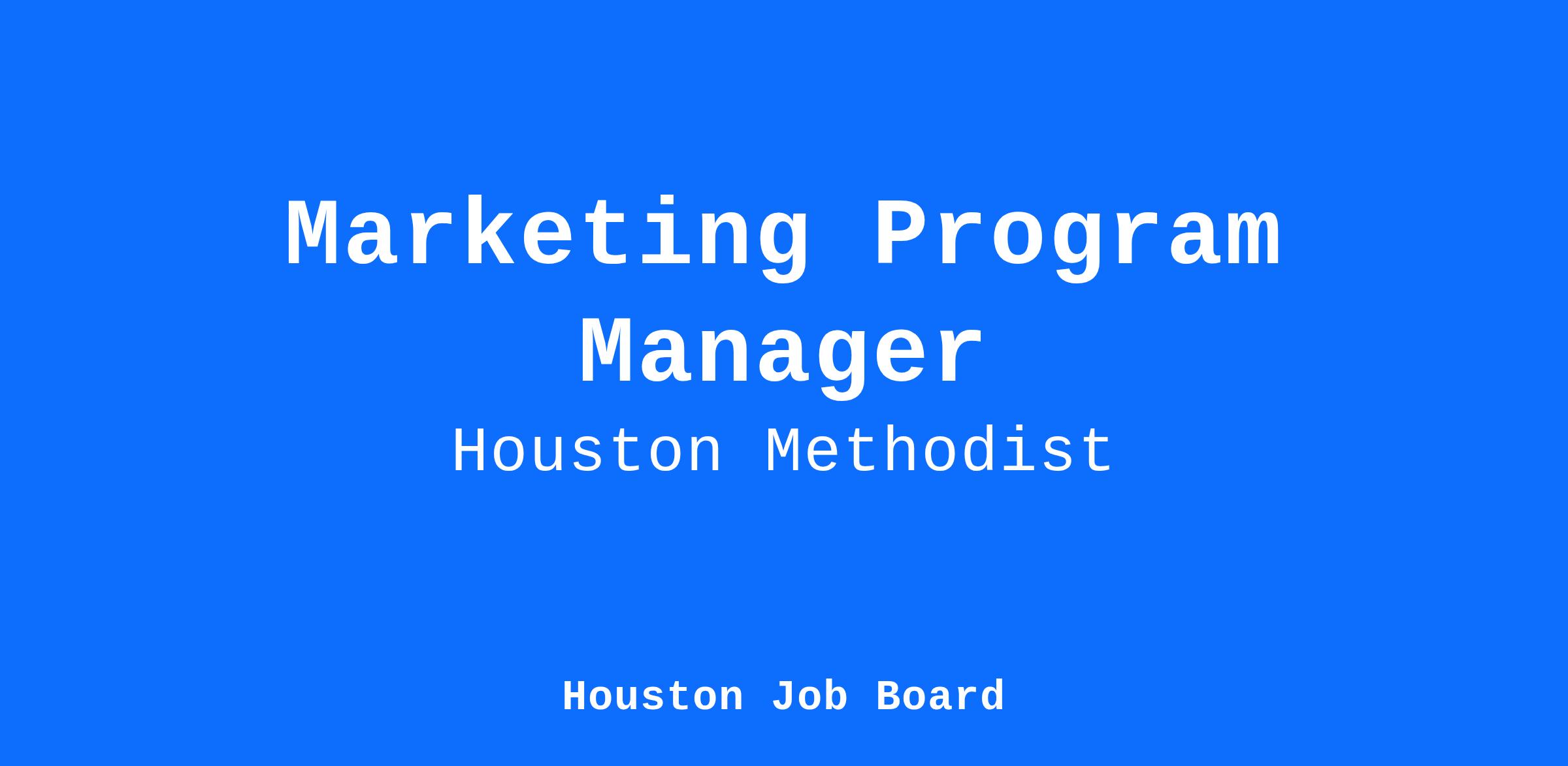 At Houston Methodist, Marketing Program Manager position is responsible driving preference and volume/impact for assigned programs, service lines, and/or sponsorships, and is accountable for performance against strategy/goals for the assigned area. This client-facing role independently manages relationship with hospital leadership (administrators and chairs) and leads the development, implementation and measurement and optimization of marketing/sponsorship plans. The Marketing Program Manager works with stakeholders to proactively identify problems and creative solutions, developing and presenting business cases to influence strategic change.