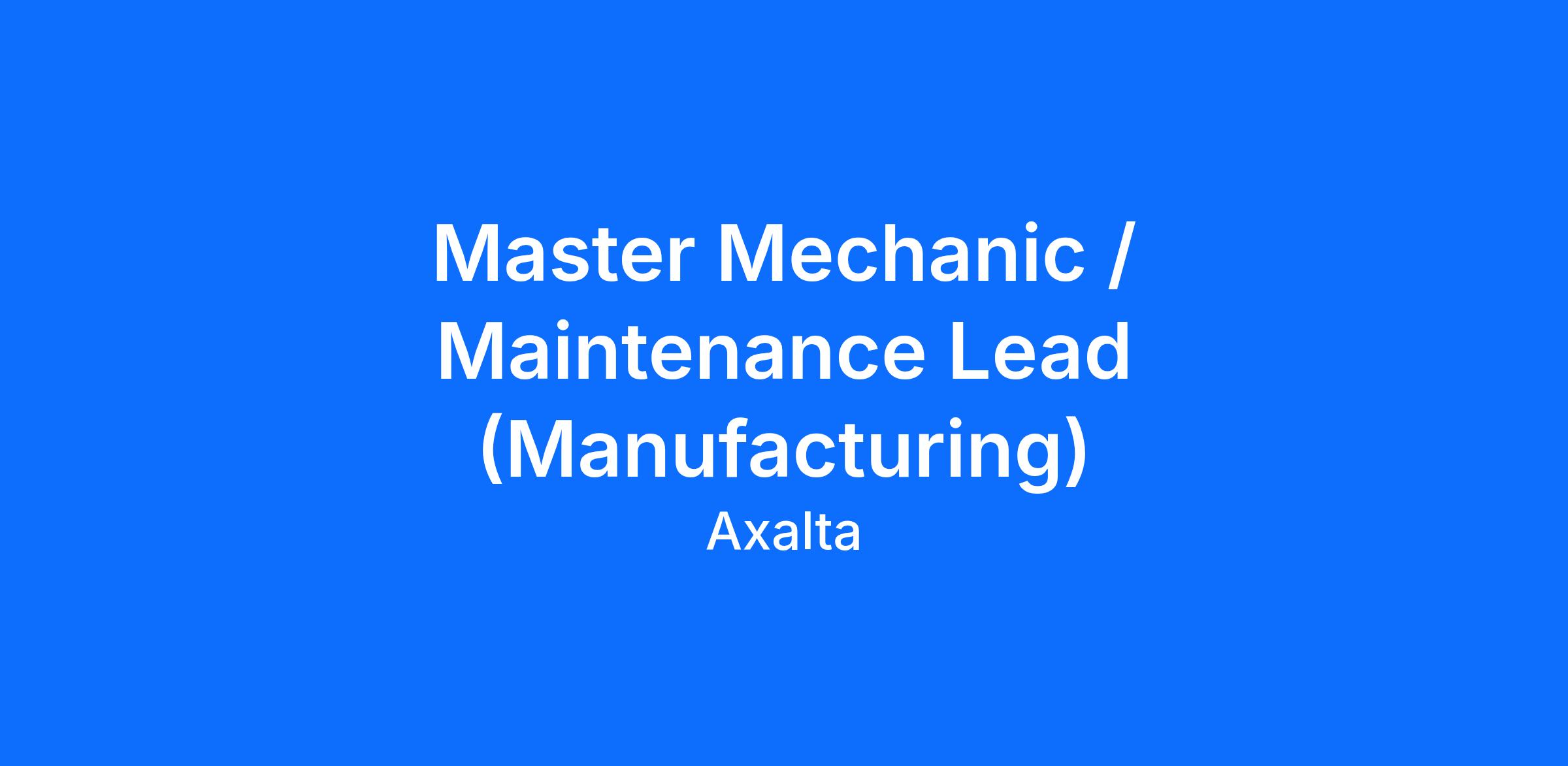Job Title: Master Mechanic / Maintenance Lead