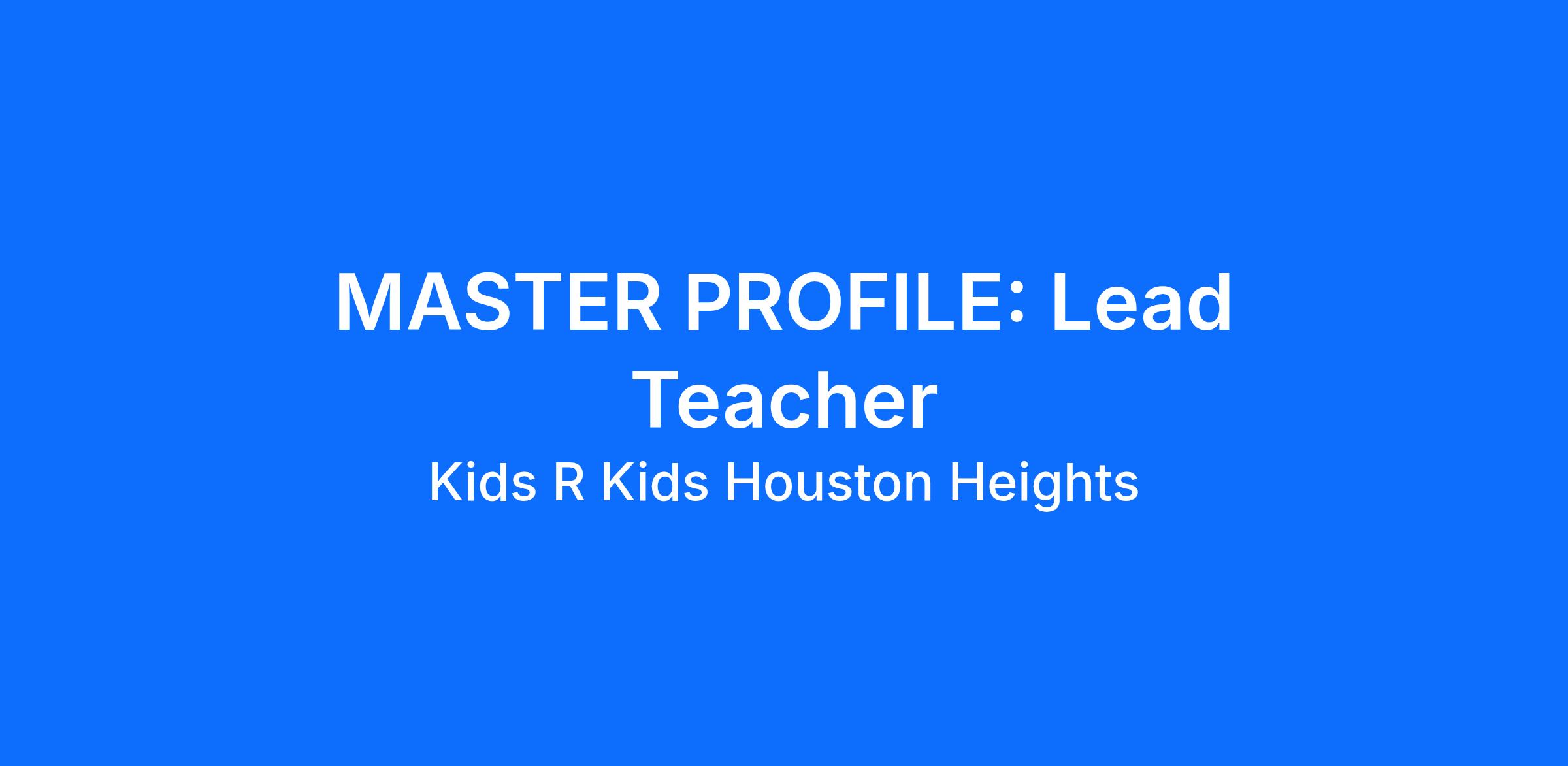MASTER PROFILE: Lead Teacher
