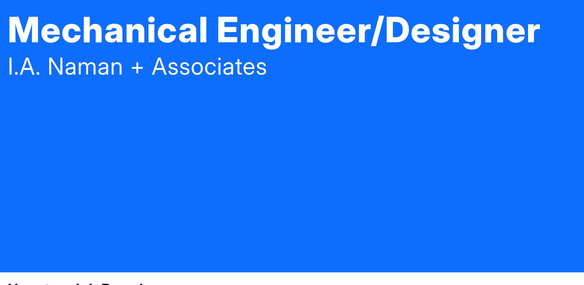 If you believe you are ready to be positioned for a purpose as a Mechanical Engineer/Designer with IAN+A, we encourage you to apply!
