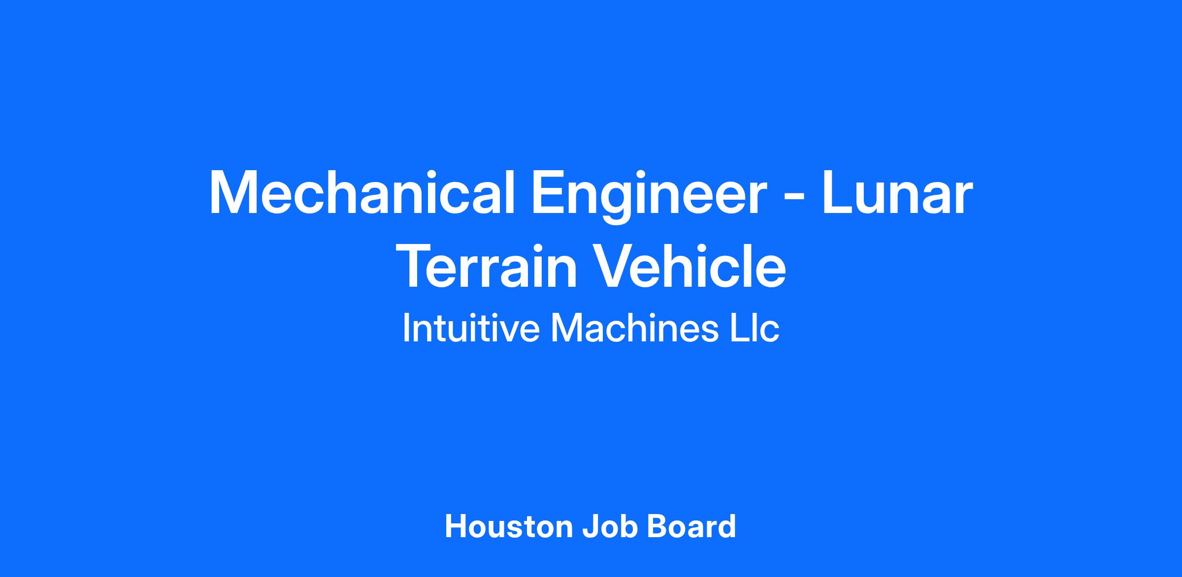 Intuitive Machines is an Equal Opportunity employer. All qualified applicants will receive consideration for employment without regard to sex, gender identity, sexual orientation, race, color, religion, national origin, disability, protected veteran status, age, or any other characteristic protected by law.