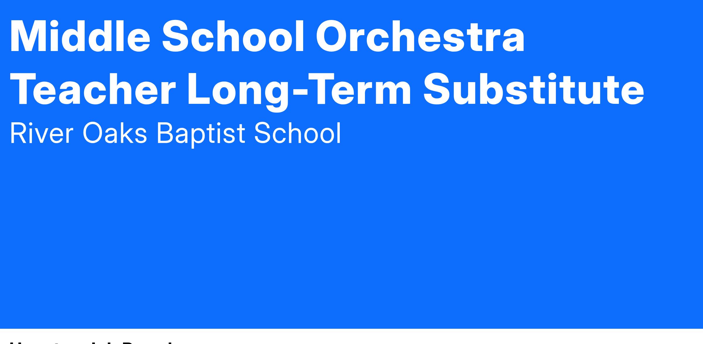 River Oaks Baptist School is seeking a Long-term Substitute Orchestra Teacher for the Fall of 2025.