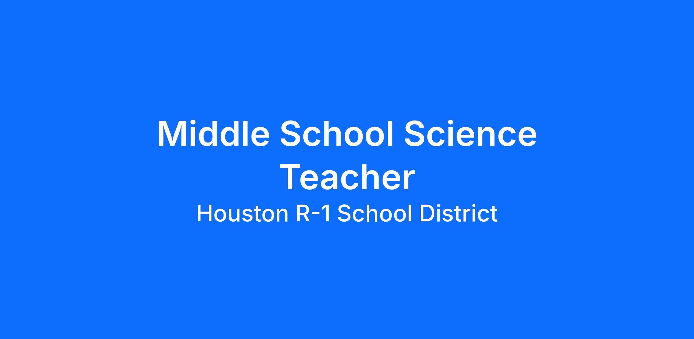 Houston Middle School is accepting applications for a Middle School Science Instructor for the 2026-2027 school year. Candidates must have or be able to obtain Missouri certification. Coaching opportunities may be included in the position depending on the qualifications and background of the selected candidate.