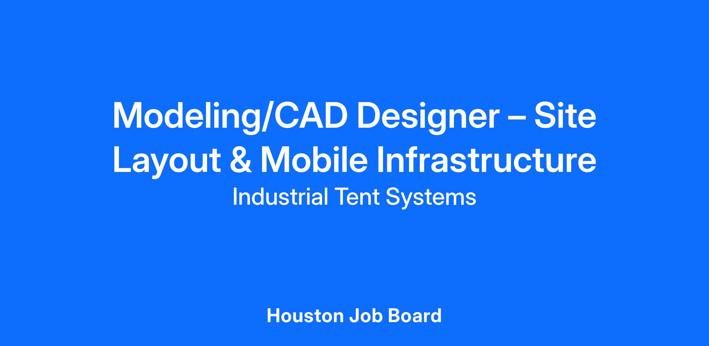We are seeking a skilled and detail-oriented Modeling/CAD Designer with strong proficiency in AutoCAD to join our dynamic team. This role focuses on designing and modeling site layouts that incorporate temporary and mobile infrastructure, including soft-sided structures, trailers for restrooms, showers, kitchens, laundry facilities, and mobile command centers. The ideal candidate will have a keen eye for spatial planning, technical accuracy, and the ability to translate operational requirements into efficient, scalable site designs. This role will support our Sales and Marketing and Field Operations teams. Note this role is onsite in our Houston office at 13101 Almeda Drive, Houston, TX 77043