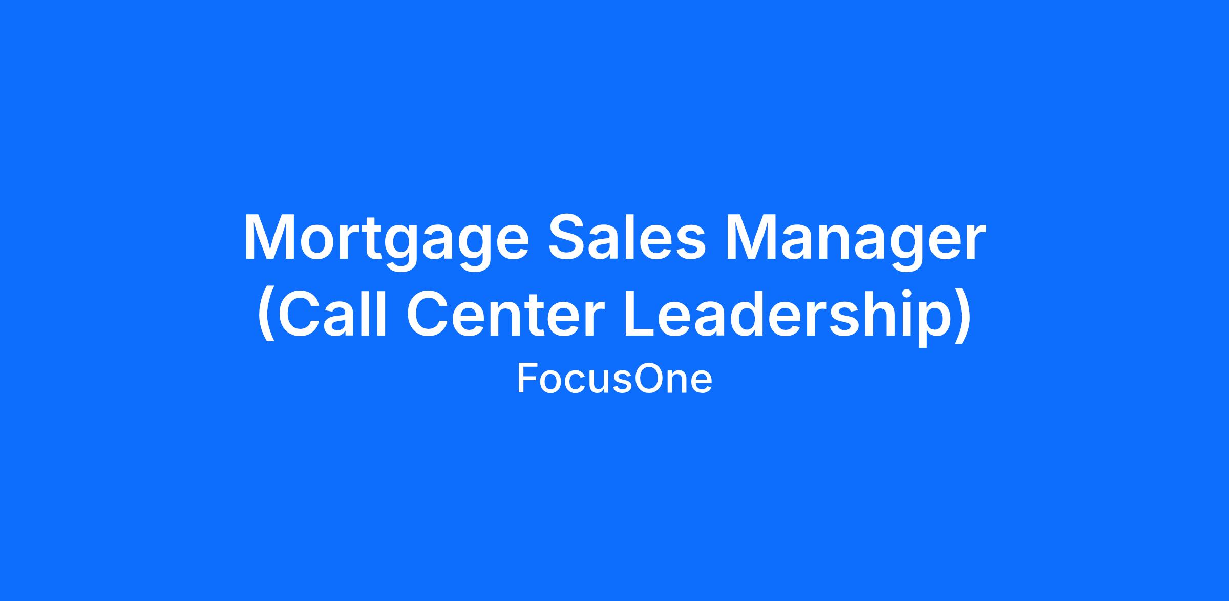 FocusOne is seeking an experienced Mortgage Sales Manager to build, lead, and scale a high-performing call center team of Mortgage Loan Officers. This role is designed for a proven mortgage leader who understands how to drive volume through people, systems, and structure β not someone limited to personal production. This individual will own recruiting, coaching, performance management, and sales execution across a growing mortgage sales platform.