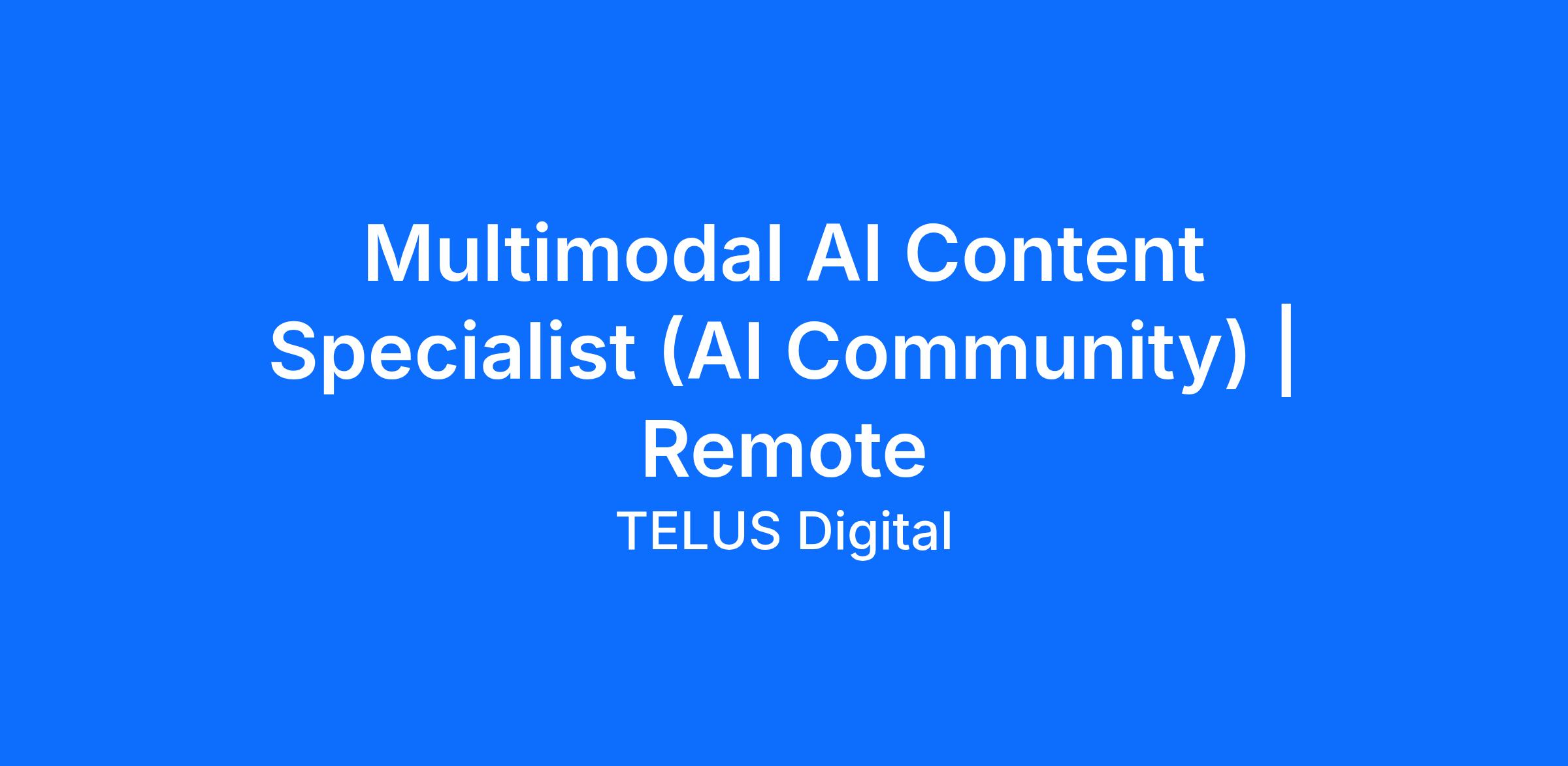 At TELUS Digital, we are teaching AI to see, hear, and understand the world just as humans do. As a Multimodal AI Content Expert in our Global Community, you are at the forefront of the most exciting frontier in technology. We are moving beyond text-only models to create AI that can reason across images, videos, and audio in real-time. We look to you to ensure these complex, multi-layered outputs are accurate, contextually aware, and culturally resonant. At TELUS, you are helping to build the "eyes and ears" of the next generation of artificial intelligence.