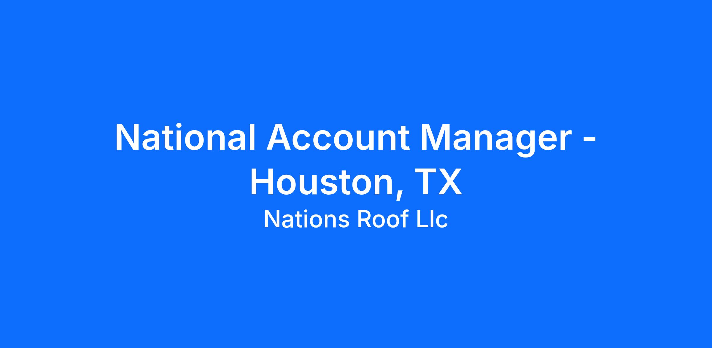 We are seeking a highly motivated professional National Account Managers to develop business with new clients in allocated territories. Qualified candidates will be able to demonstrate strategically delivered client-focused commercial roofing solutions based on customer needs.