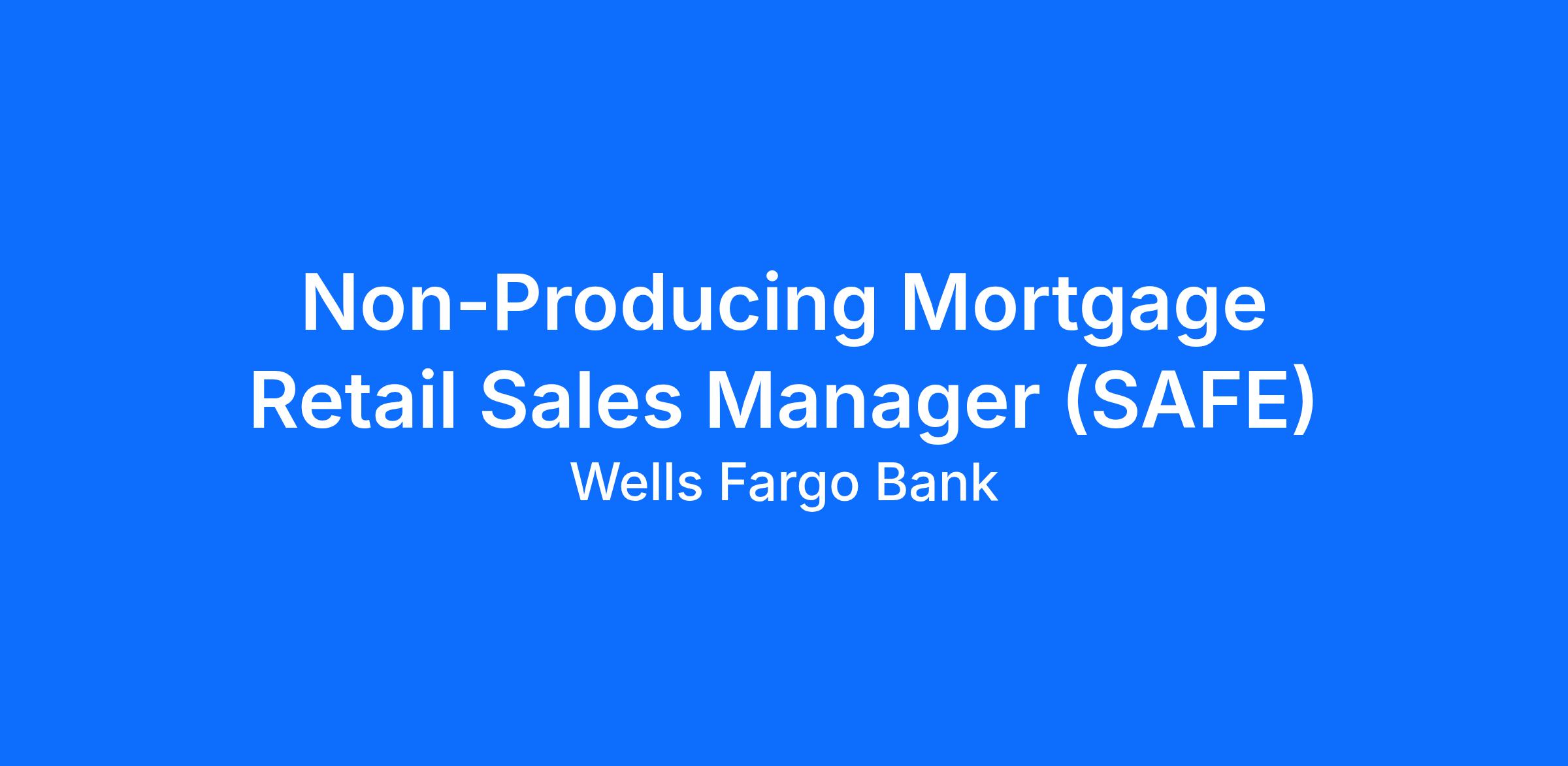 Wells Fargo is seeking a Non-Producing Mortgage Retail Sales Manager in Consumer Lending as part of Home Lending. Learn more about our career areas and lines of business at wellsfargojobs.com.
