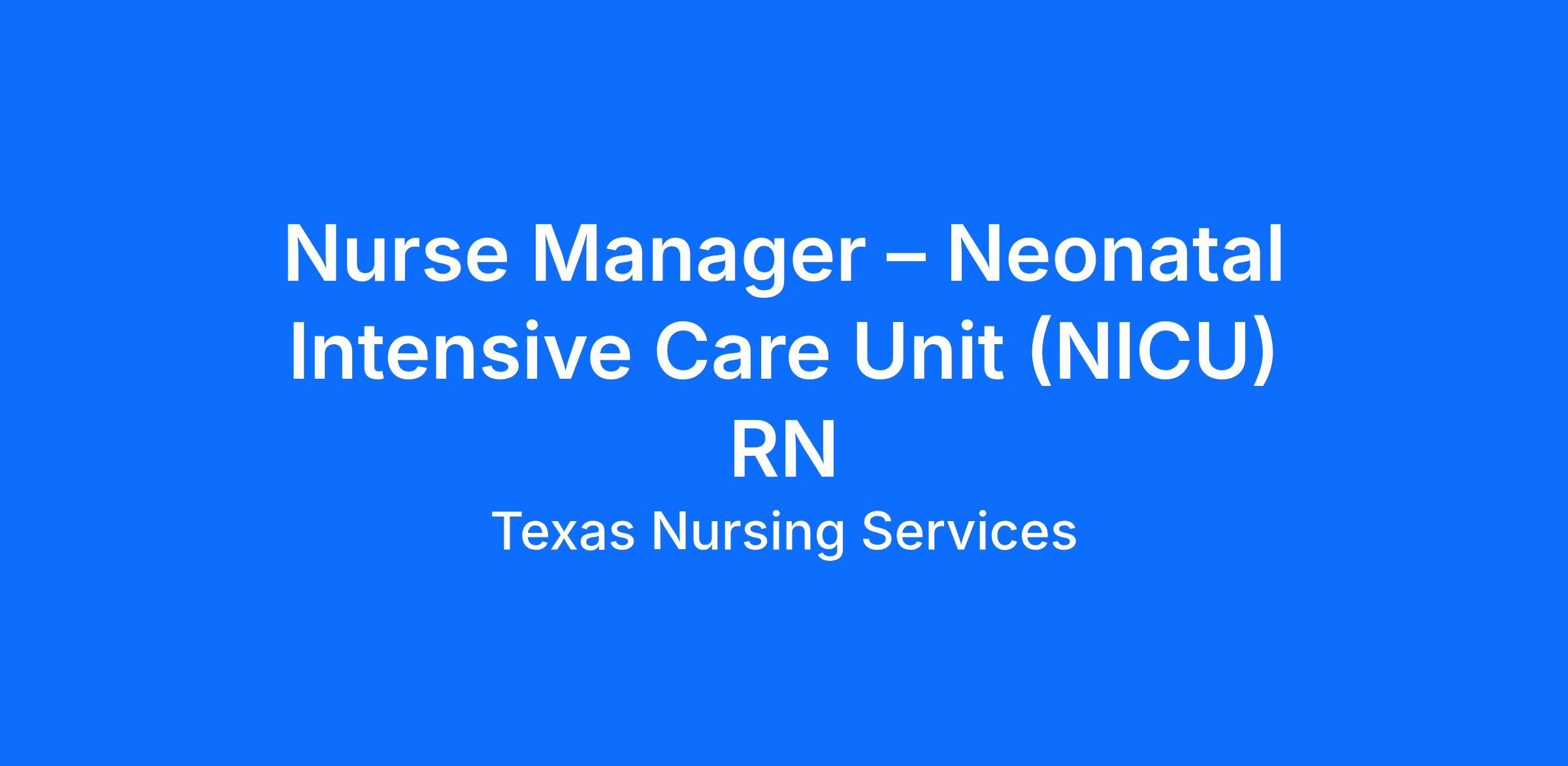#HoustonRNJobs #NICUNurseManager #NeonatalLeadership #TexasNursingJobs #RNLeadership