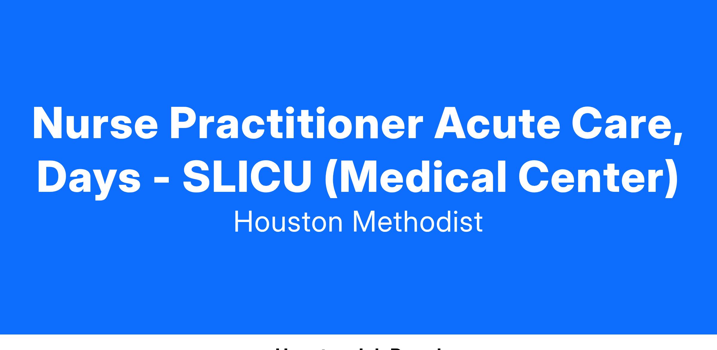 Nurse Practitioner Acute Care, Days - SLICU (Medical Center)