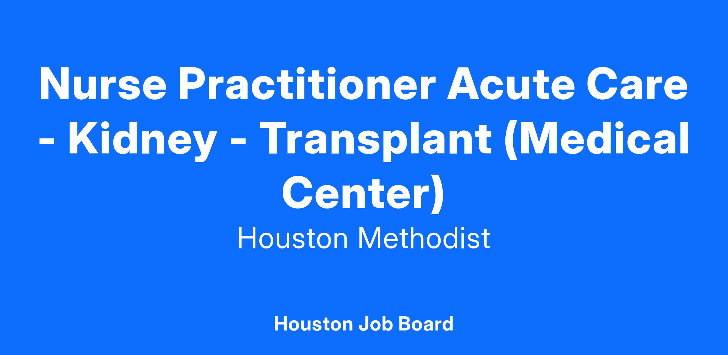 Nurse Practitioner Acute Care - Kidney - Transplant (Medical Center)