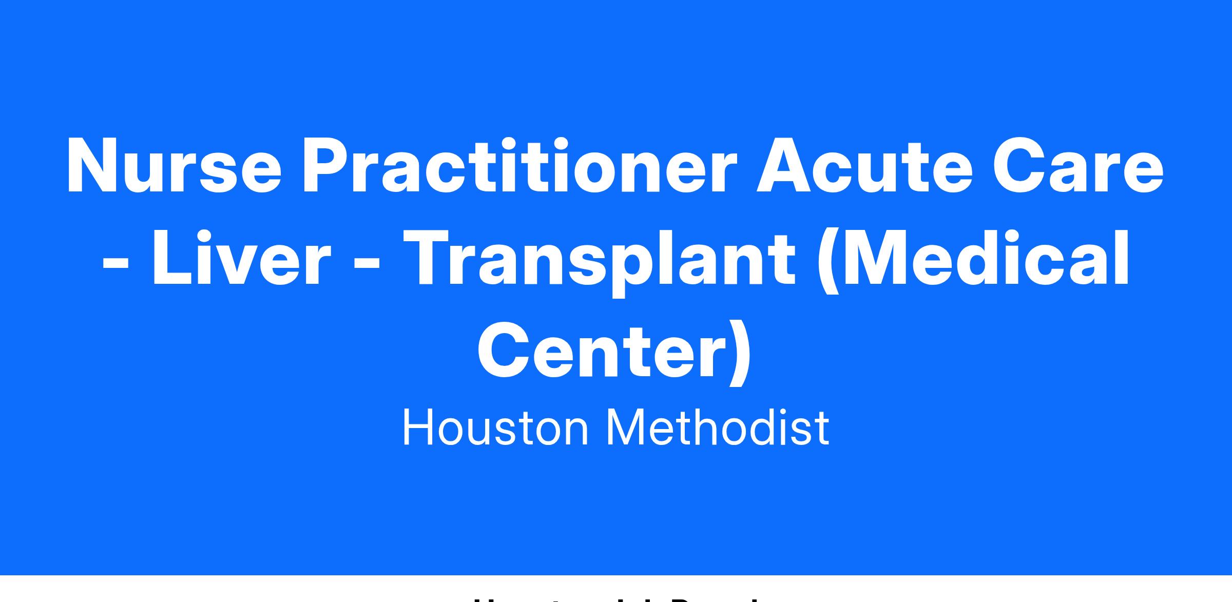 Nurse Practitioner Acute Care - Liver - Transplant (Medical Center)
