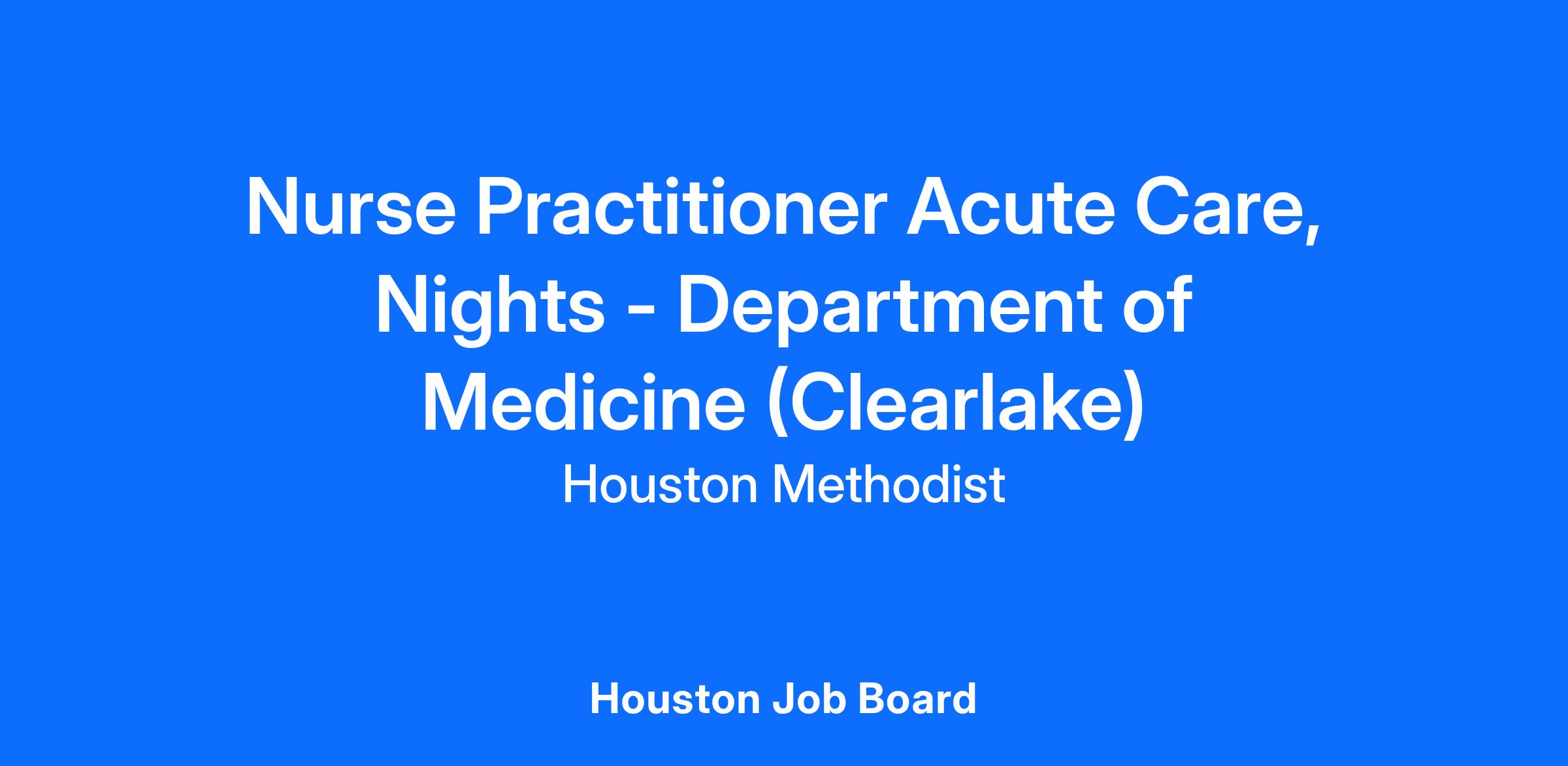 Nurse Practitioner Acute Care, Nights - Department of Medicine (Clearlake)