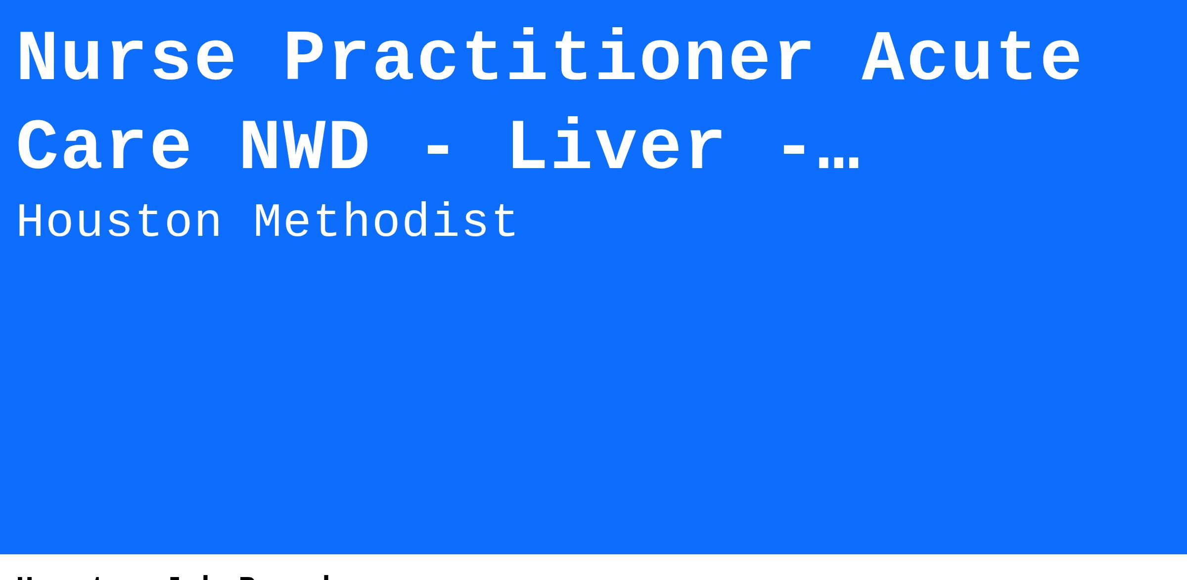 Nurse Practitioner Acute Care NWD - Liver - Transplant (Medical Center)