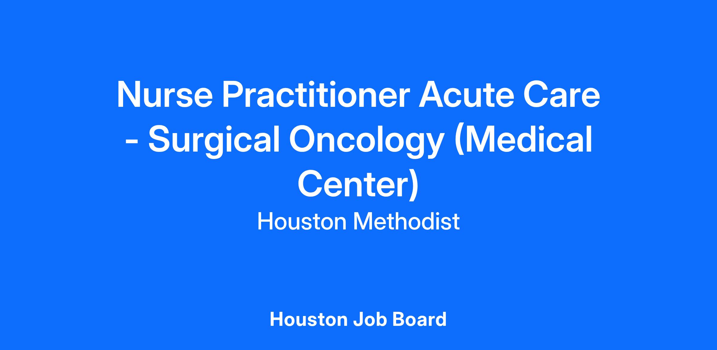 Nurse Practitioner Acute Care - Surgical Oncology (Medical Center)