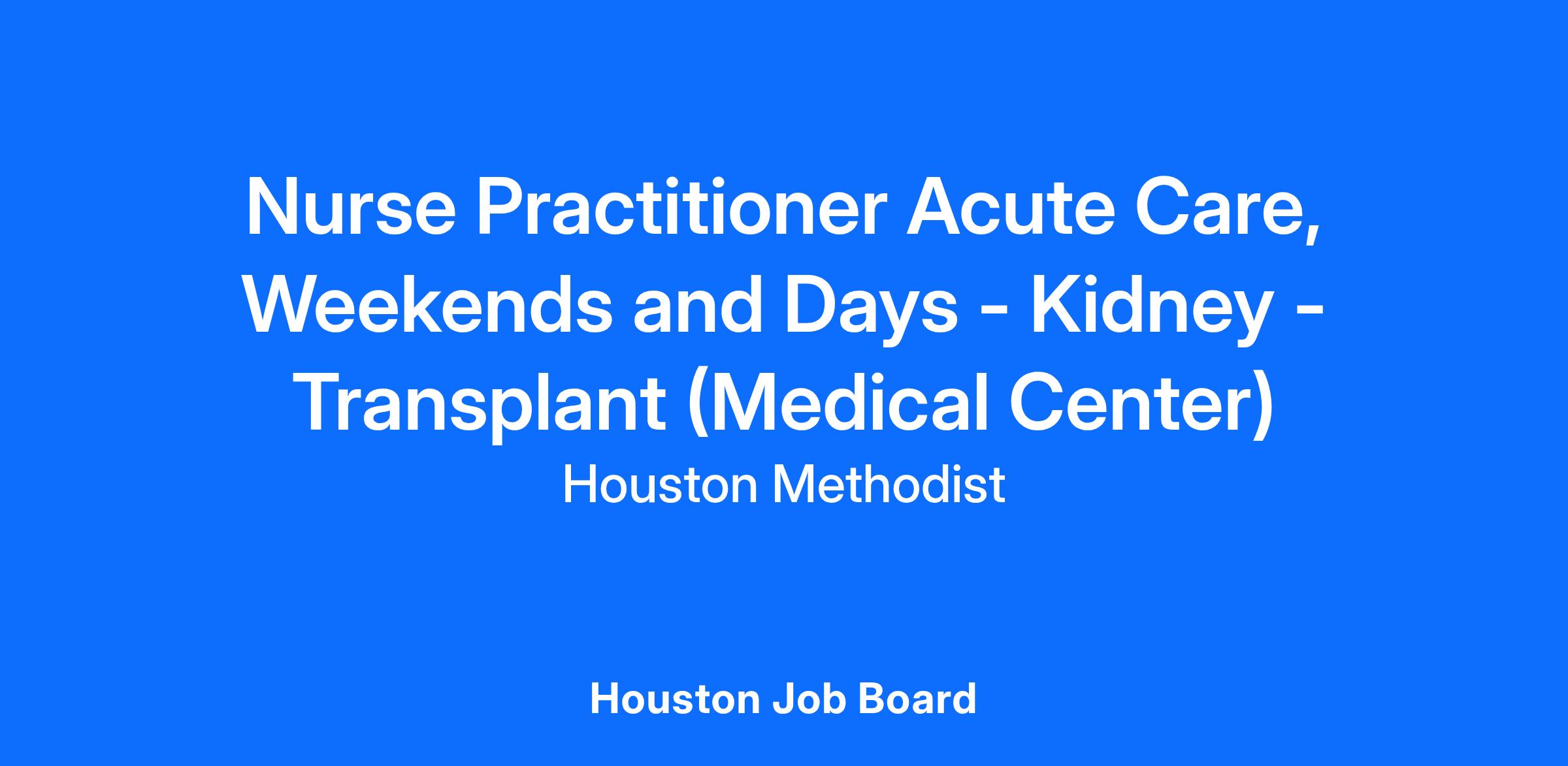 Nurse Practitioner Acute Care, Weekends and Days - Kidney - Transplant (Medical Center)