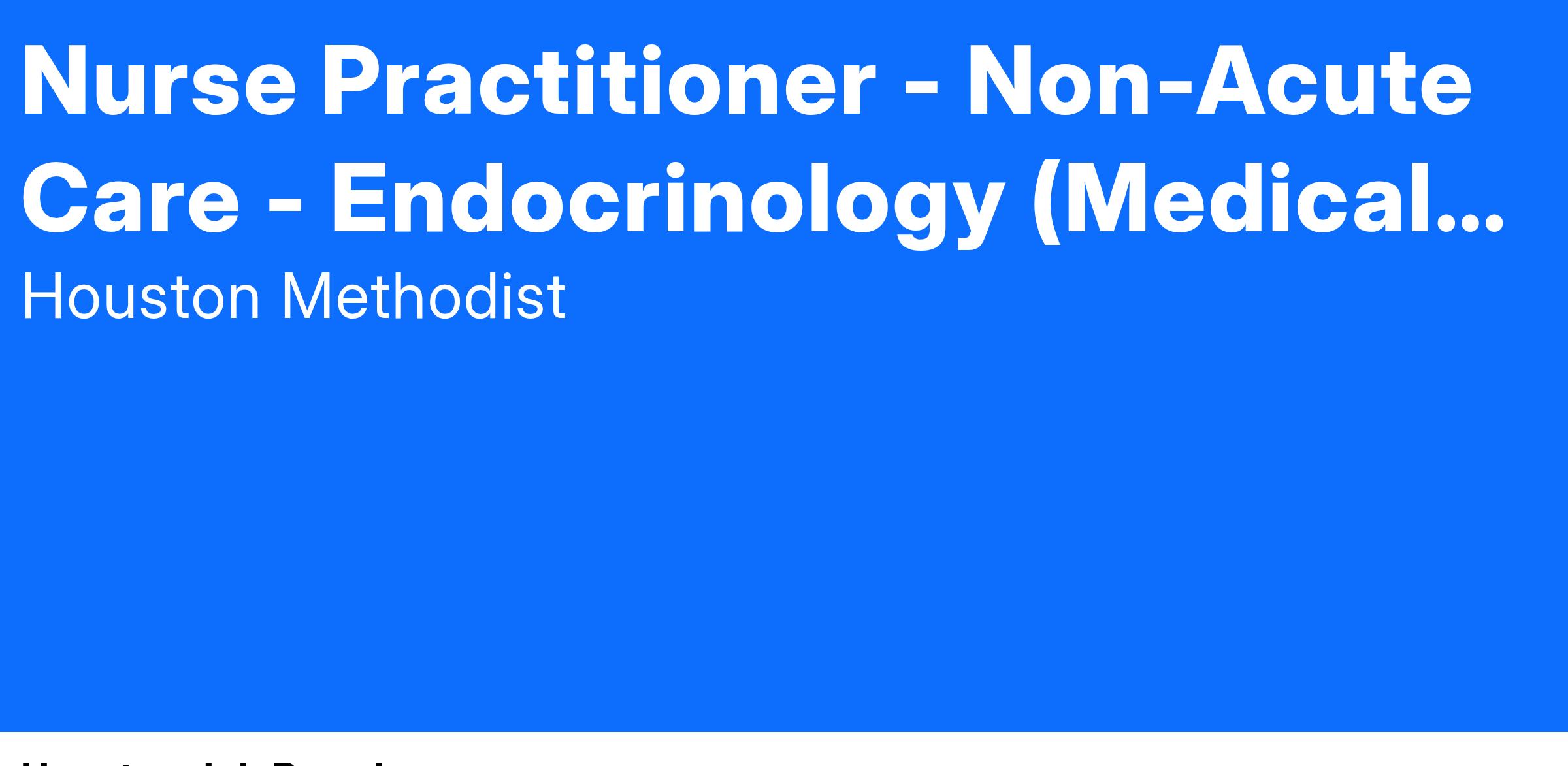 Nurse Practitioner - Non-Acute Care - Endocrinology (Medical Center)