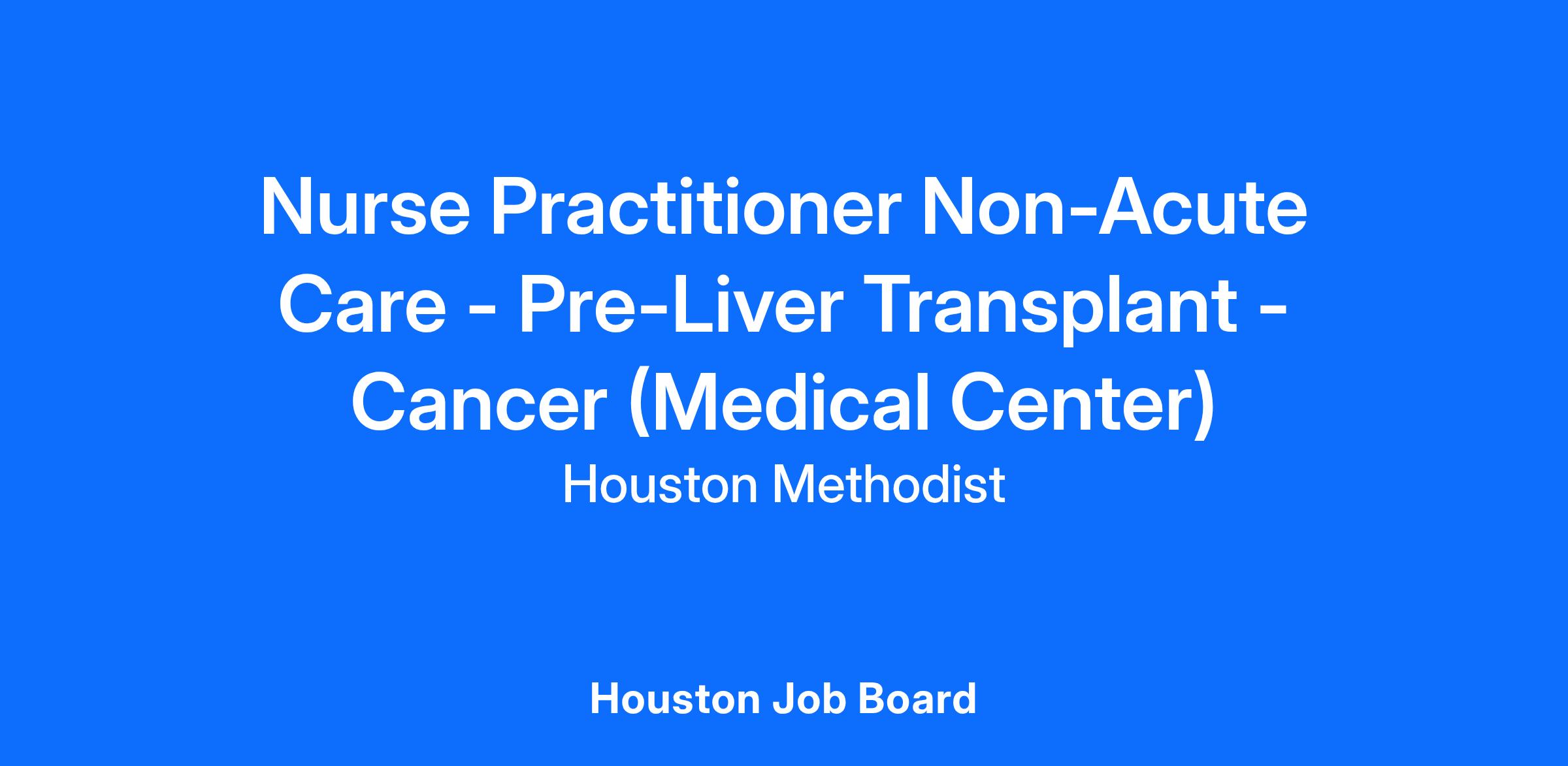 Nurse Practitioner Non-Acute Care - Pre-Liver Transplant - Cancer (Medical Center)