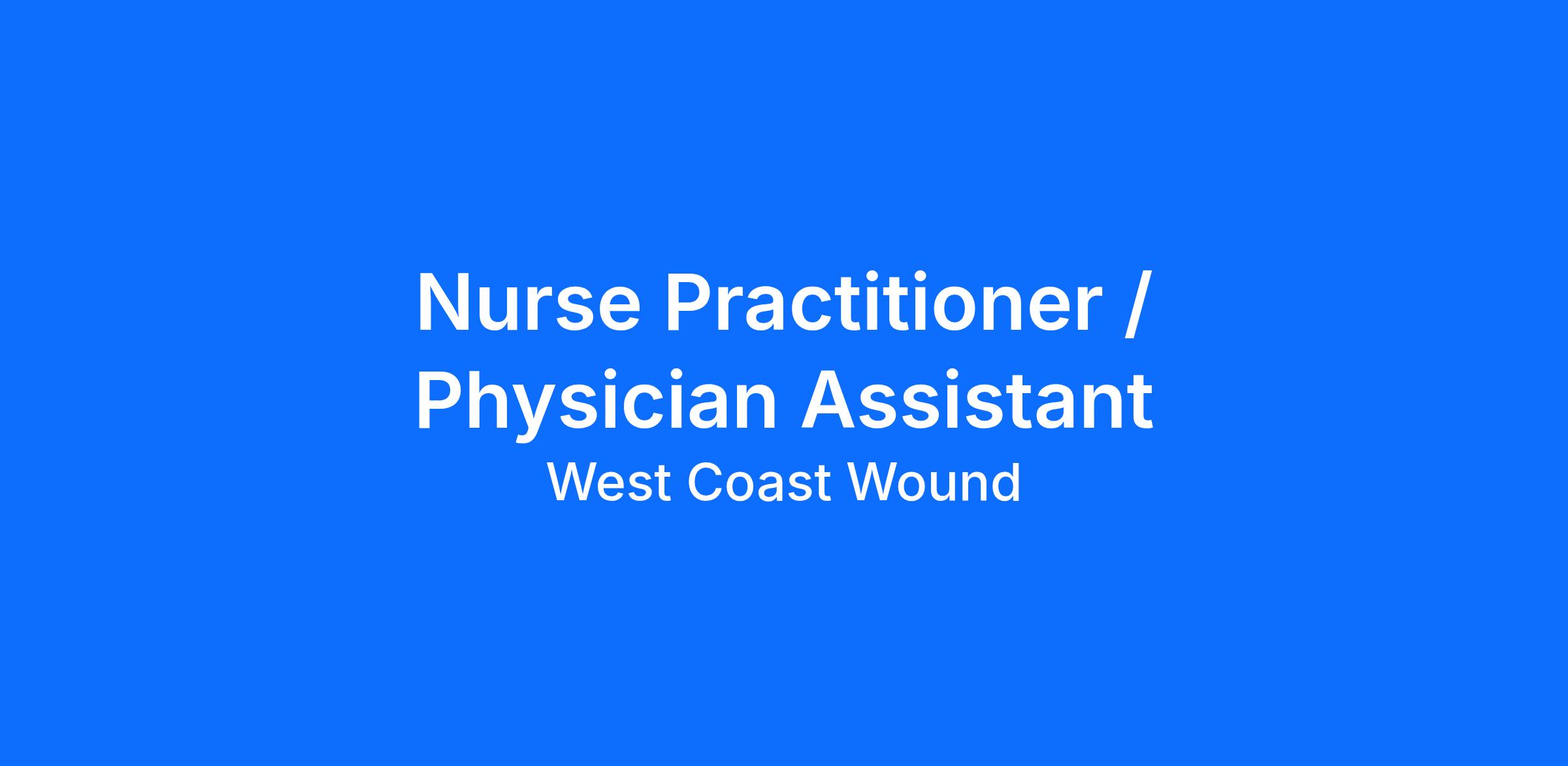 Are you a Nurse Practitioner or PA looking to join a fast-growing team making a difference in the way patients' wounds are being healed? If so, West Coast Wound is the right place to be!