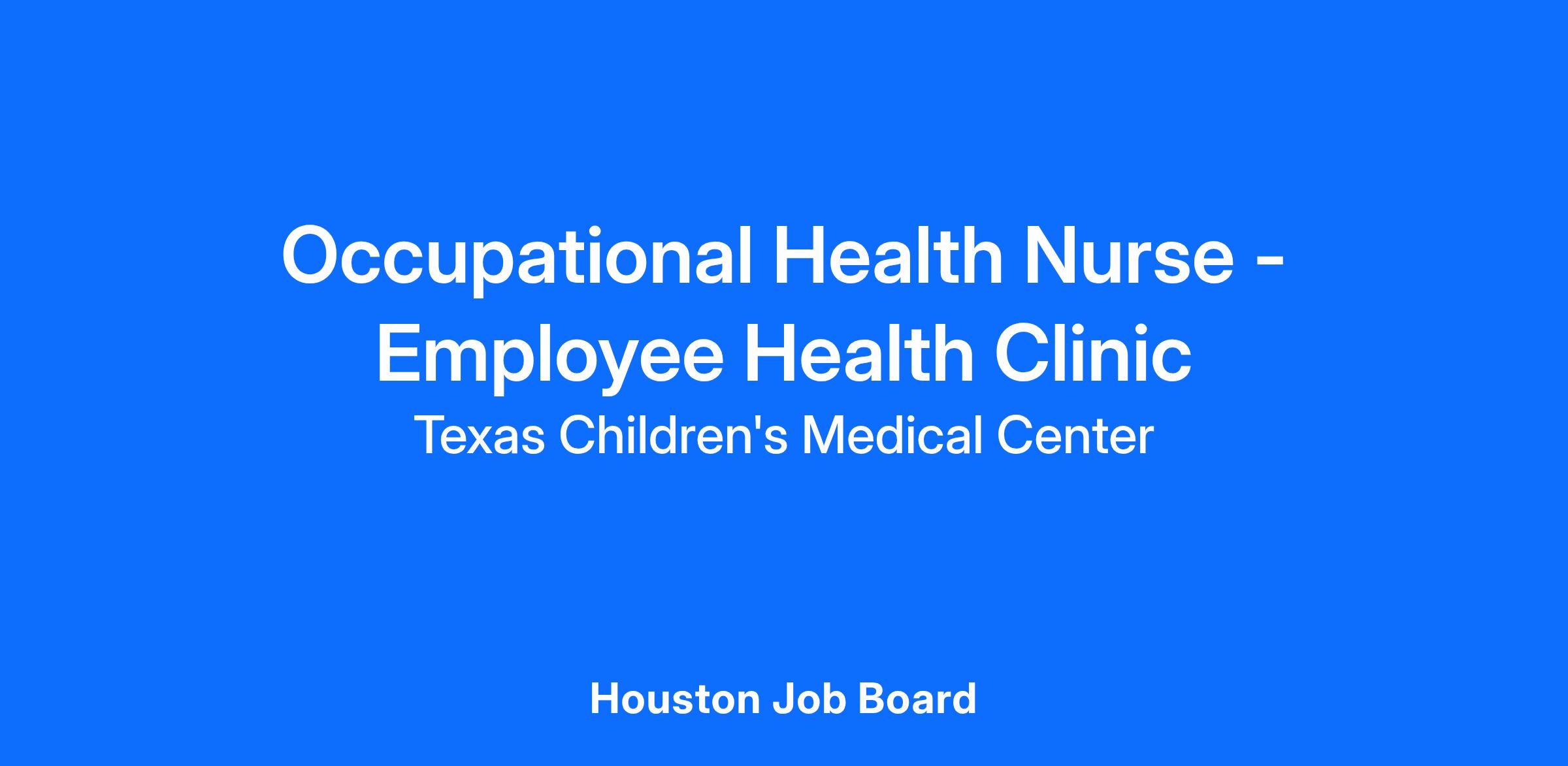DescriptionWe are searching for a Occupational Health Nurse with the Texas Children's Employee Health clinic - someone who works well in a fast-paced setting. In this position, you'll provide direct and telephone nursing care, health teaching, patient advocacy, supervision and coordination of care given by others, and the coordination of services required for patients outside the ambulatory care setting in a manner that is age and developmentally appropriate.