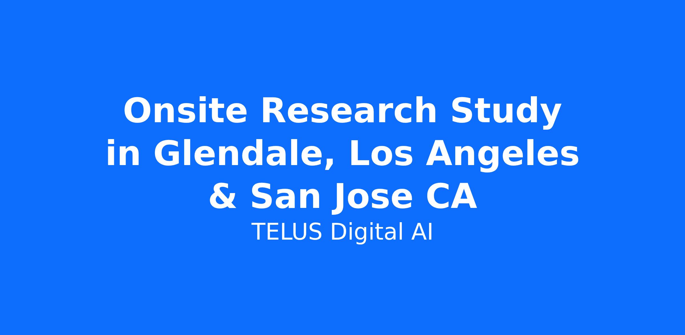 Onsite Research Study in Glendale, Los Angeles & San Jose CA