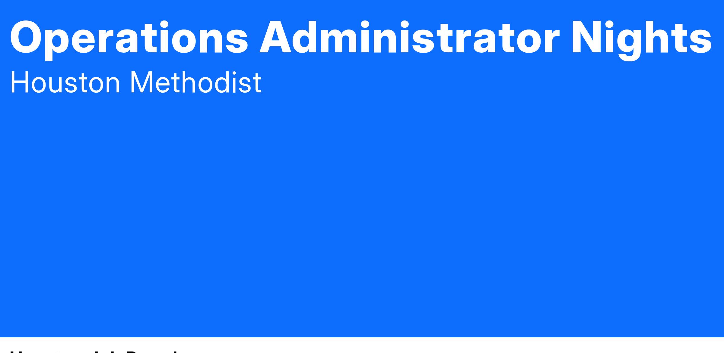 At Houston Methodist, the Operations Administrator (OA) position is responsible for providing operational oversight and leadership throughout the organization. This position is responsible for leadership in unforeseen situations, making timely decisions that directly impact patient care, fostering interdepartmental/interprofessional collaboration which reflect the mission and values of Houston Methodist. The OA position ensures timely and effective communication and provides clinical guidance in the management of patient care, staffing, and interpreting and implementing established policies and procedures. This position creates an environment for the management and delivery of safe patient care. The OA position demonstrates critical thinking through self-direction, initiative, effective interpersonal skills and oral/written communications skills.