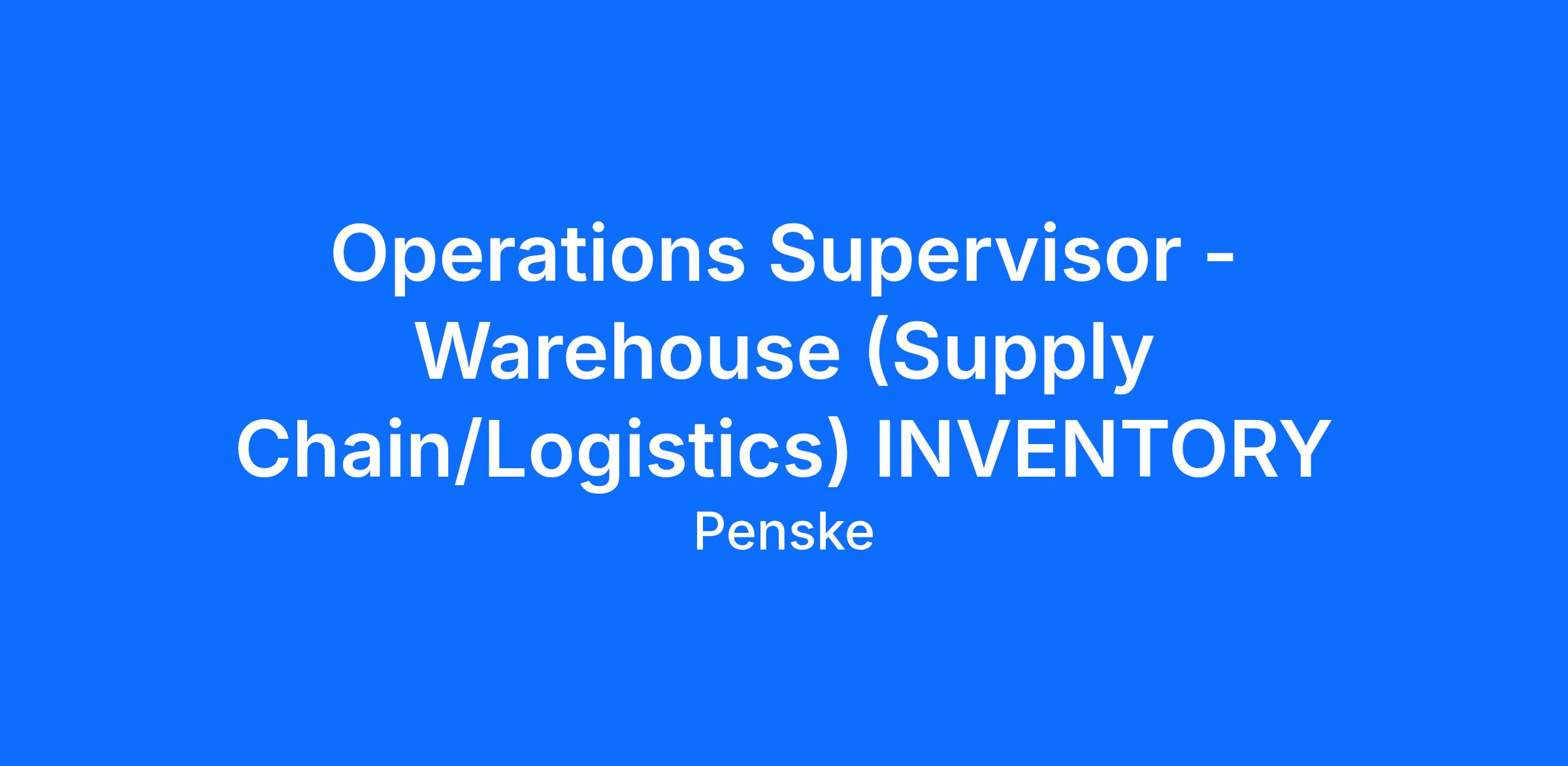 Operations Supervisor - Warehouse (Supply Chain/Logistics) INVENTORY