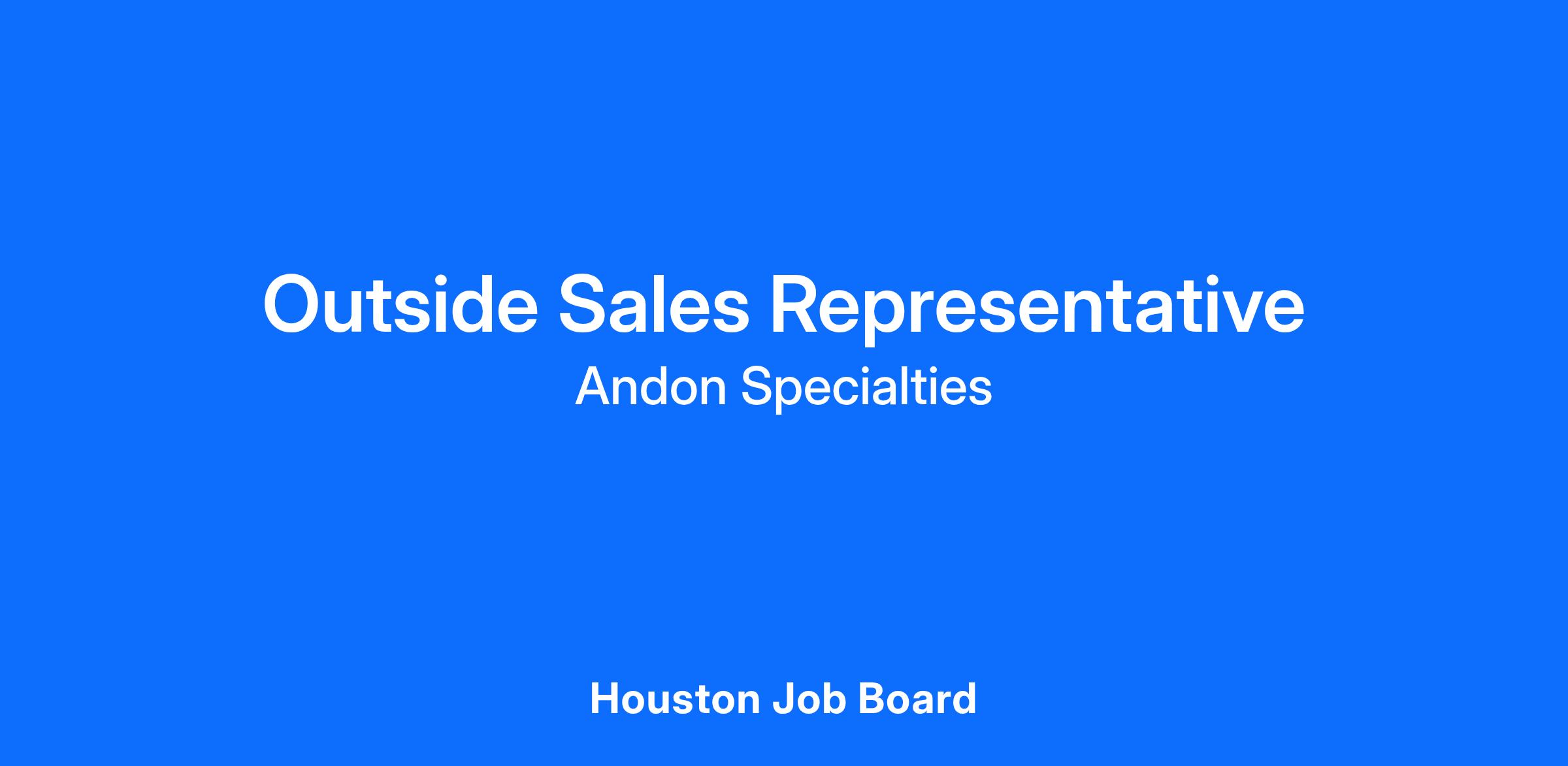 ANDON Specialties is a national leading manufacturer's representative/distributor of process automation, analytical, and fluid handling solutions. We are searching for Outside Sales Candidates in Houston, TX.