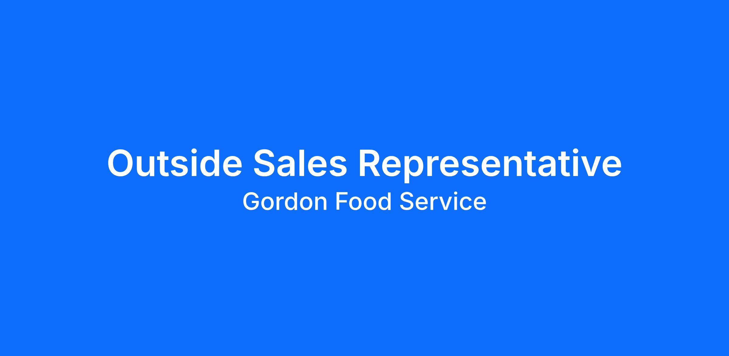 At Gordon Food Service, our customers come first. As an Outside Food Sales Representative, you will cultivate relationships, develop new business, and provide innovative solutions to our customers, helping them to achieve their goals and, in return, yours!