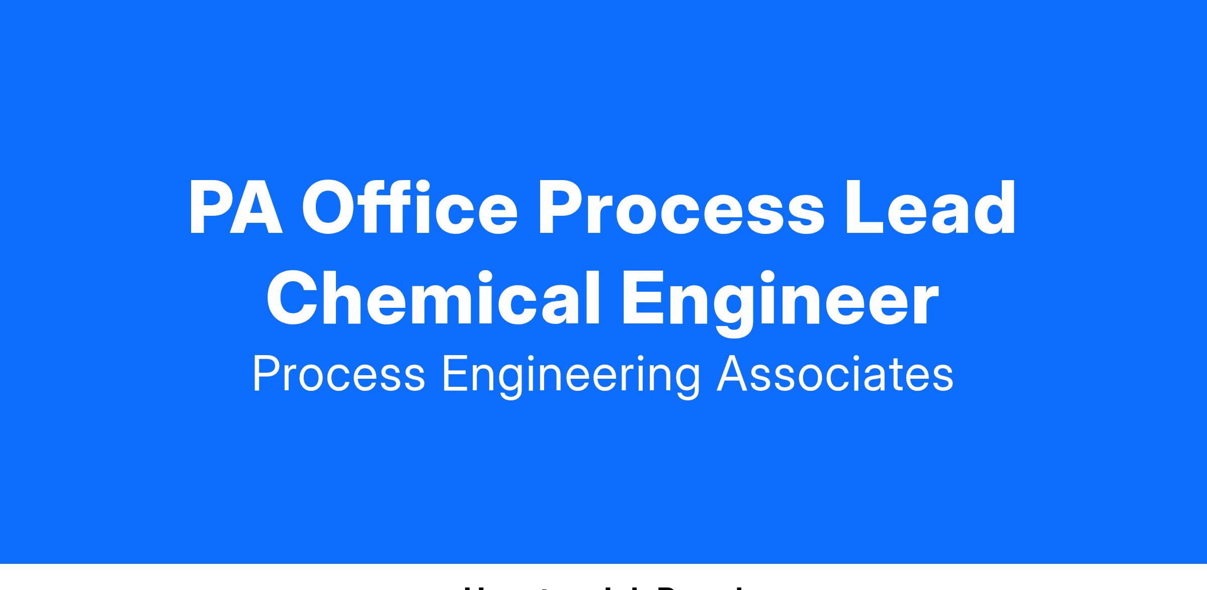 Process is actively seeking a full-time Senior Process Engineer (Chemical Engineer) in their PA office. The role involves development of detailed process design documents for clients in a variety of industrial market segments. Design work may include development of detailed front-end engineering design (FEED) packages to support clients in their capital project management and execution as well as providing on-site support to local clients for small capital project execution.