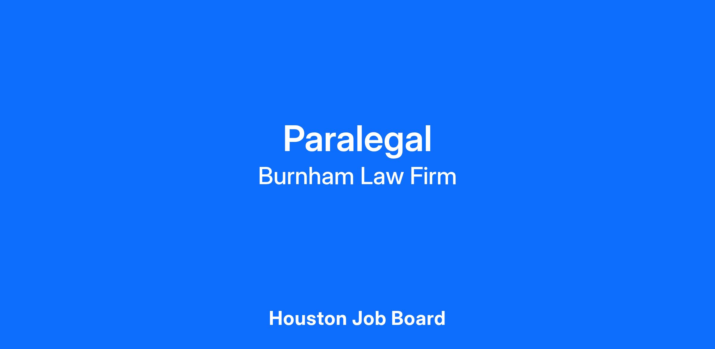 Burnham Law is a dynamic and forward-thinking firm dedicated to providing exceptional legal representation and a client-centered experience. We're expanding into Houston, TX, and are seeking driven, skilled paralegals to join our growing team. Our firm culture values connection, collaboration, authenticity, and excellence, empowering our team members to thrive both personally and professionally.