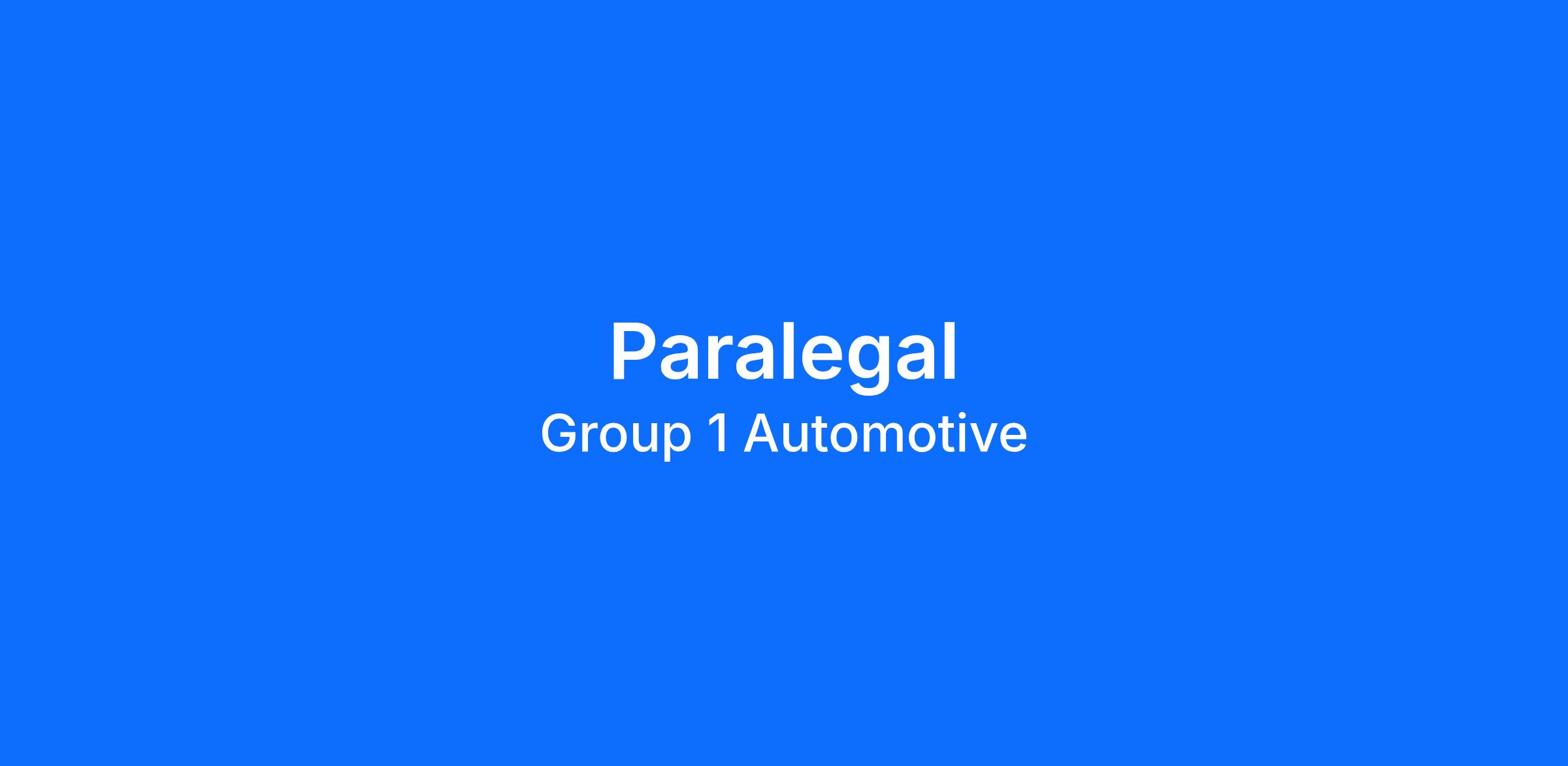 Group 1 Automotive, Inc., an international, Fortune 250 automotive retailer and a leading operator in the automotive retailing industry, is seeking an experienced and dynamic Paralegal to join our team.