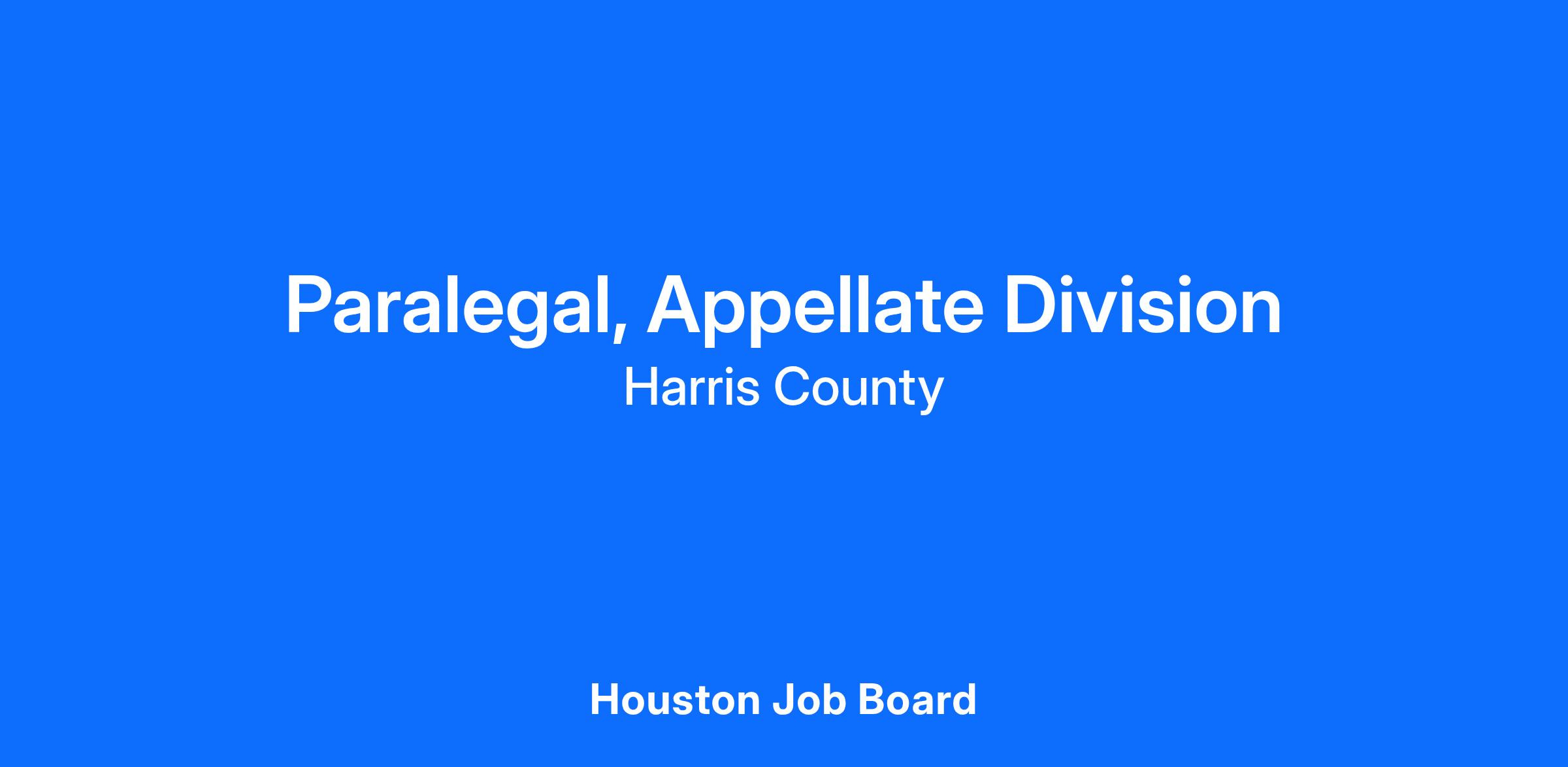The Appellate Division of the Harris County Public Defender's Office (PDO) seeks a dedicated and detail-oriented paralegal to join our team. The ideal candidate will assist attorneys with all stages of casework. This includes assisting with new client intake, gathering school, medical, and court records; corresponding with clients; keeping track of key dates, deadlines, and attorney schedules; and assisting attorneys as they advocate for clients in court or in the community.