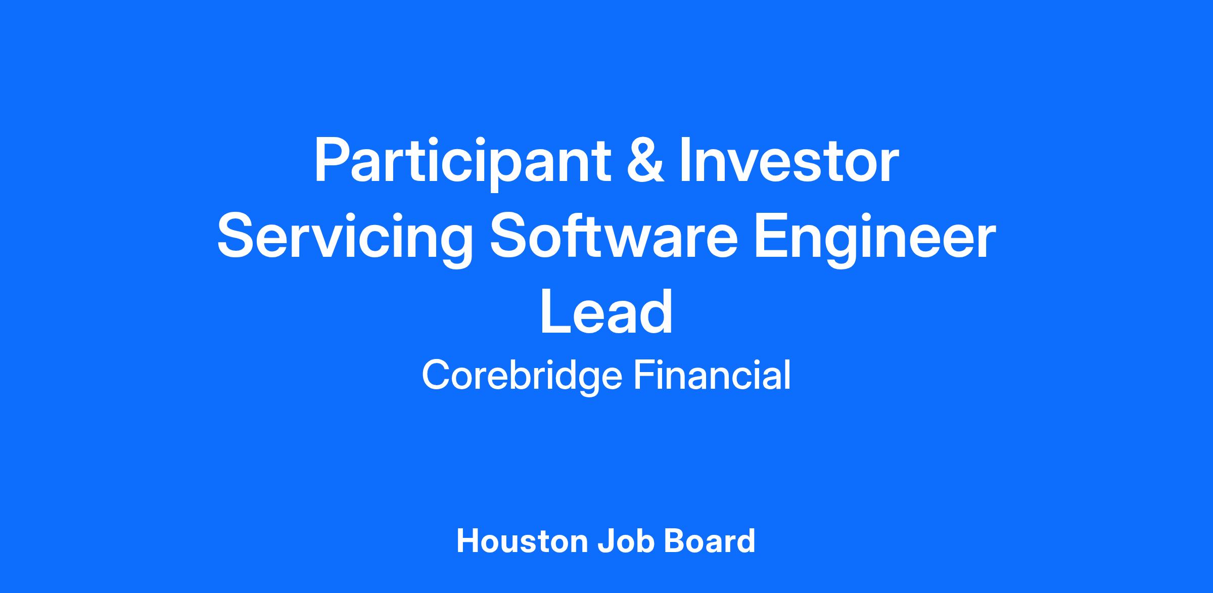 Participant & Investor Servicing Software Engineer Lead