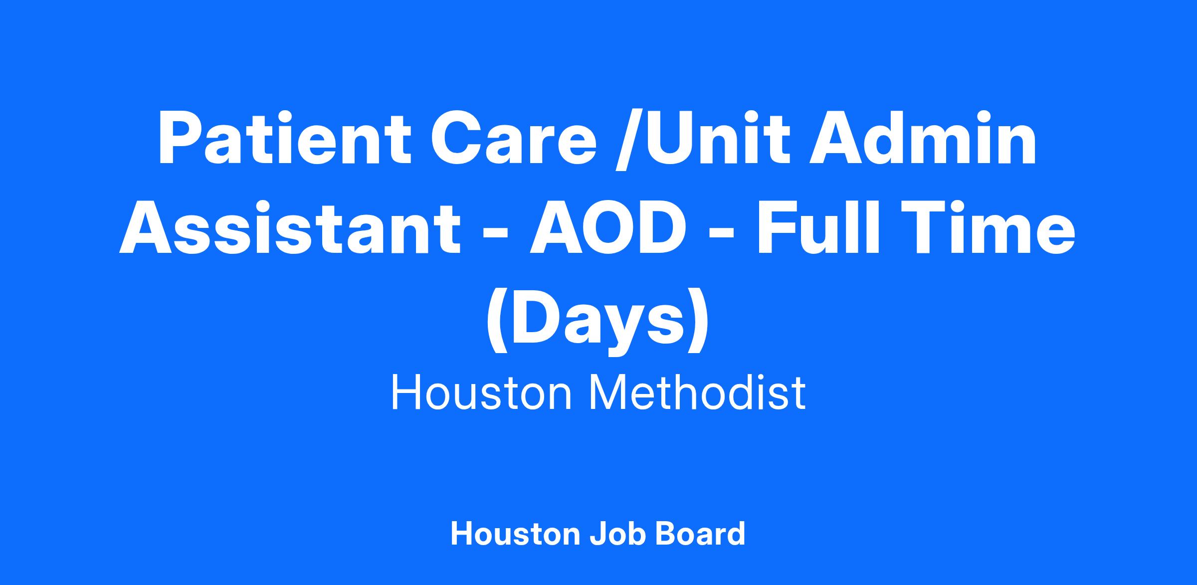 Patient Care /Unit Admin Assistant - AOD - Full Time (Days)