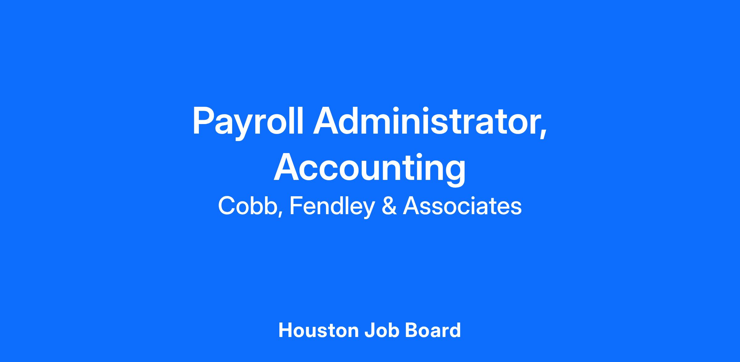 CobbFendley is seeking an experienced Payroll Administrator in our Houston, Texas office.