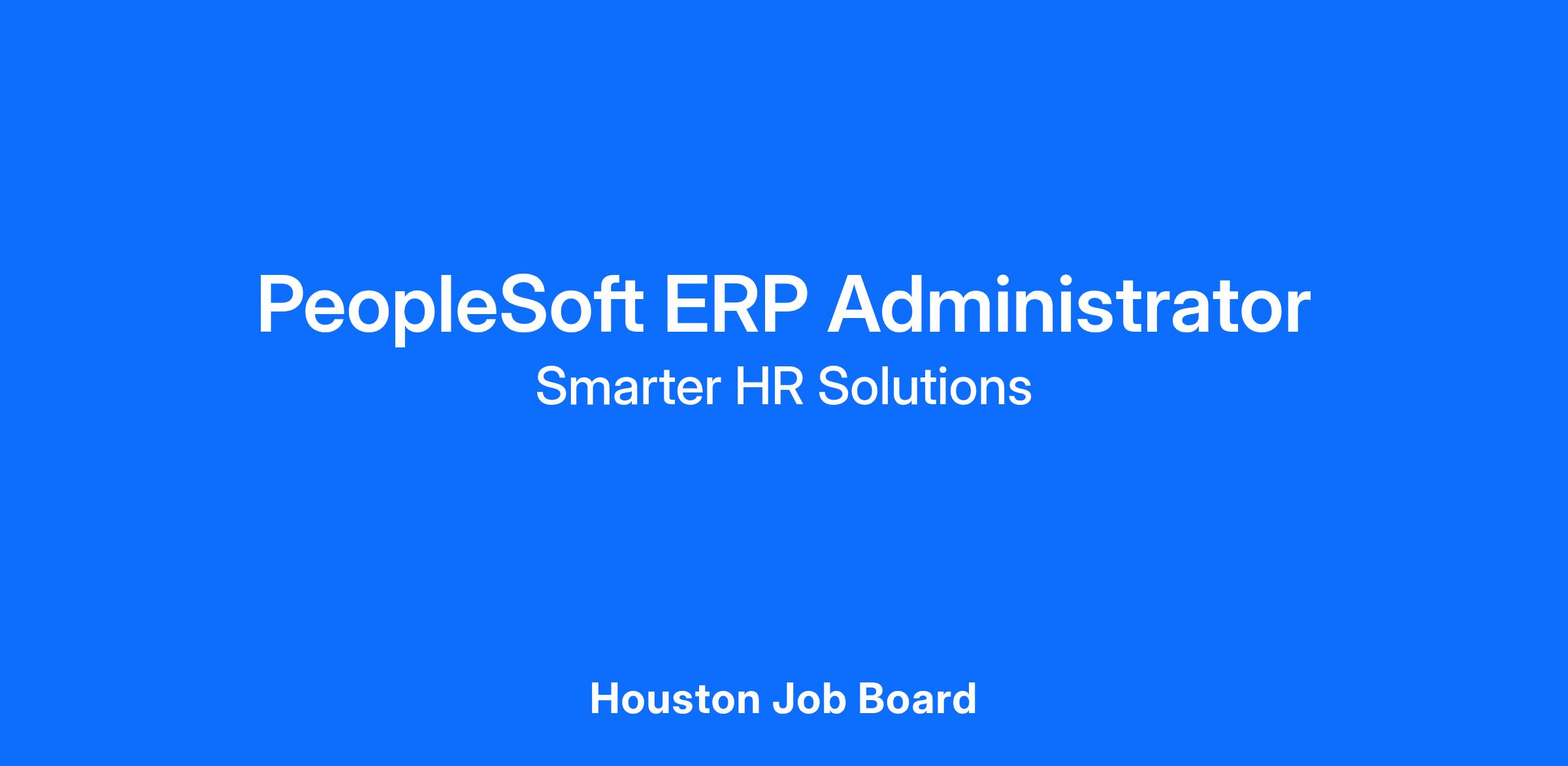 <\/html>"}}],"isMobile":false,"iframe":"true","jobType":"Full time","applyName":"Apply Now","zsoid":"673084038","FontFamily":"Verdana, Geneva, sans\-serif","jobOtherDetails":[{"fieldLabel":"Industry","uitype":2,"value":"IT Services"},{"fieldLabel":"Work Experience","uitype":2,"value":"5+ years"},{"fieldLabel":"Salary","uitype":1,"value":"$60.67\/hr"},{"fieldLabel":"City","uitype":1,"value":"Houston"},{"fieldLabel":"State\/Province","uitype":1,"value":"Texas"},{"fieldLabel":"Zip\/Postal Code","uitype":1,"value":"77002"}],"headerName":"PeopleSoft ERP Administrator","widgetId":"481538000000072311","isJobBoard":"false","userId":"481538000000216003","attachArr":[],"customTemplate":"3","isCandidateLoginEnabled":true,"jobId":"481538000004651059","FontSize":"12","googleIndexUrl":"https:\/\/smarterhrsolutions.zohorecruit.com\/recruit\/ViewJob.na?digest=kSkbnHeM0@ULfN8kre4OLBxHpFU9VwHtive@riko.hI\-&embedsource=Google","location":"Houston","embedsource":"CareerSite","indeedCallBackUrl":"https:\/\/recruit.zoho.com\/recruit\/JBApplyAuth.do","logoId":"2oxsac7e1f4138a8a48e1b2b76fabf6b3a45c"}