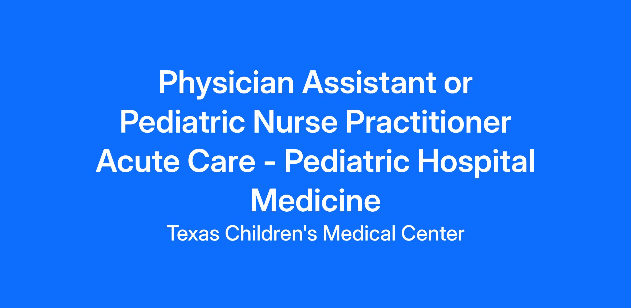 We are searching for a Physician Assistant or a Pediatric Nurse Practitioner Acute Care Certified who is motivated to work in an exciting pediatric setting!