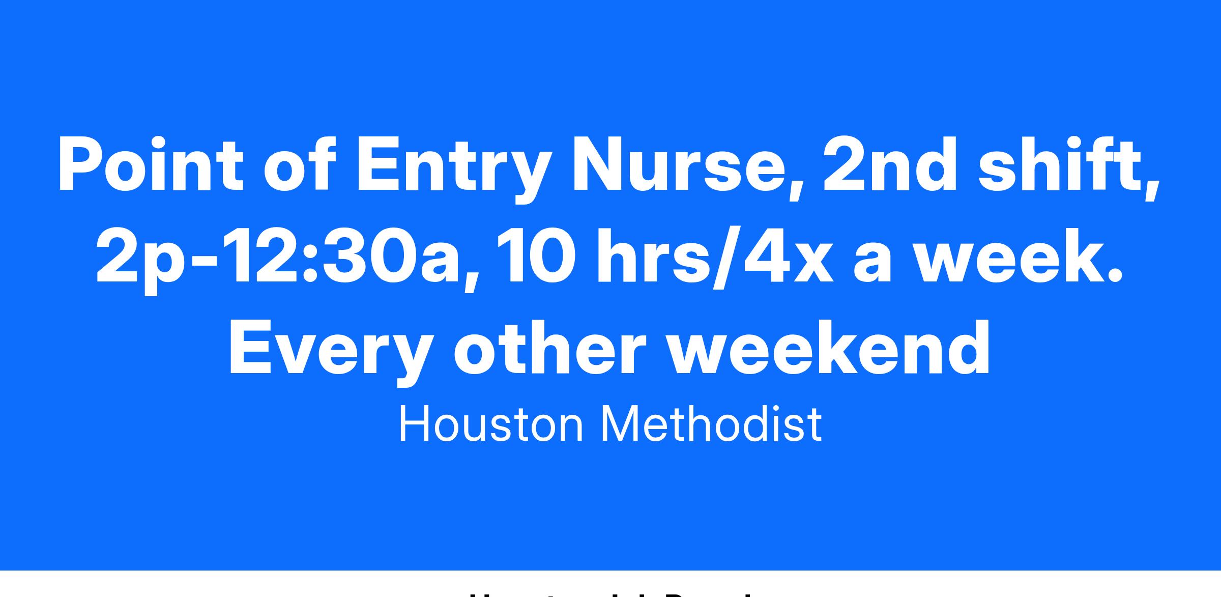 At Houston Methodist, the Point of Entry Nurse (POE) is a licensed registered nurse (RN) who responsible for facilitation of the functional and operational aspects for patients' entrance into the hospital. This position provides support to hospital units through the facilitation and coordination of patient flow and bed utilization. The POE Nurse position collaborates with clinical staff and interprofessional health care team to ensure resource utilization is appropriate to the patient's clinical needs and within covered benefits. This position ensures a compassionate, integrated, multi-disciplinary case approach which supports health caregivers to provide the highest quality, most clinically appropriate admission placement of patients, while promoting the most cost-effective utilization of the hospital's resources for those patients admitted to the hospital. The POE Nurse position ensures the most appropriate placement of patients as it relates to floors, rooms and campus, evaluating current and future needs for optimal patient care and reviews for intake and placement, external patients are clinically appropriate.