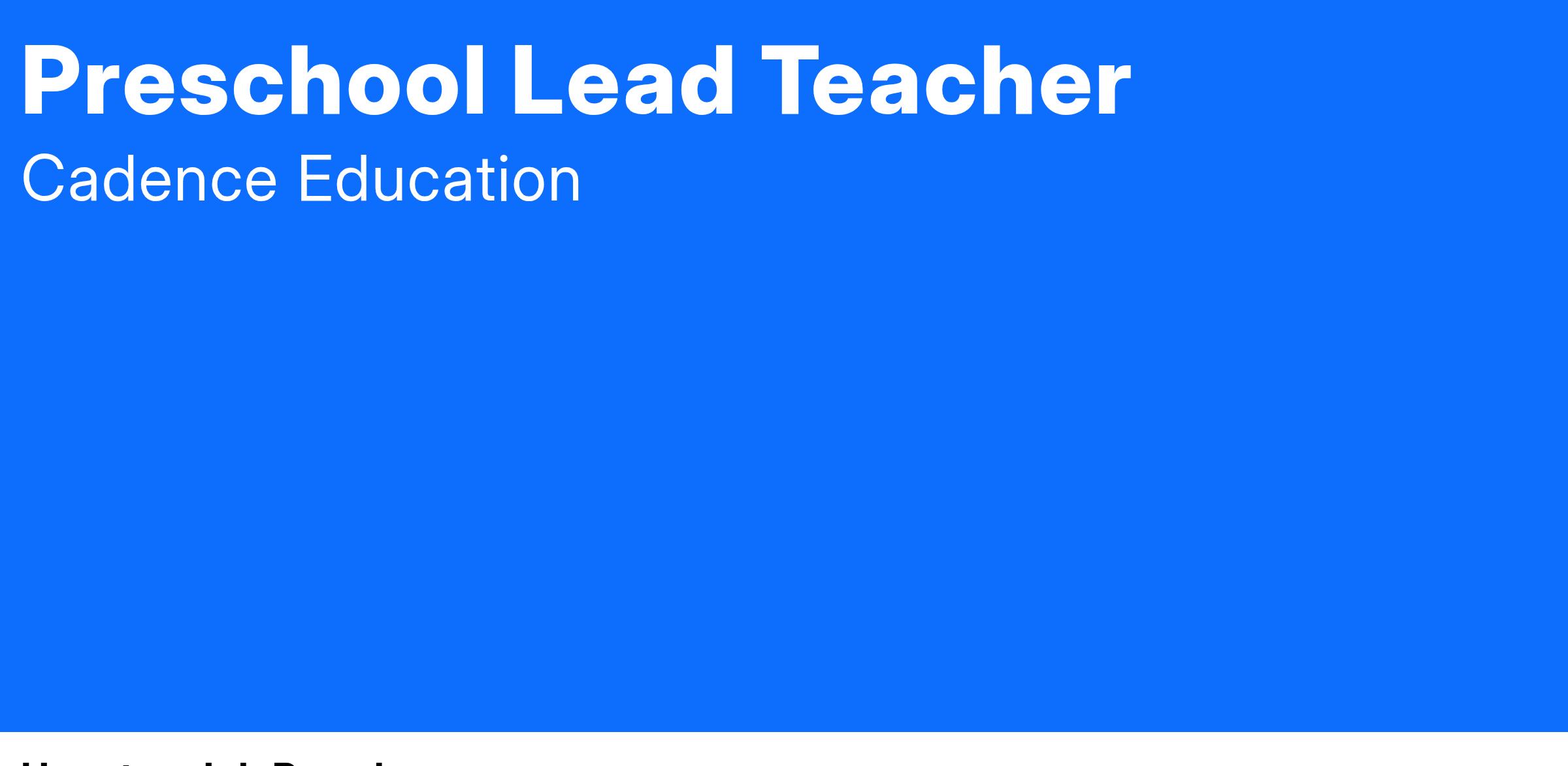 Preschool Lead Teacher