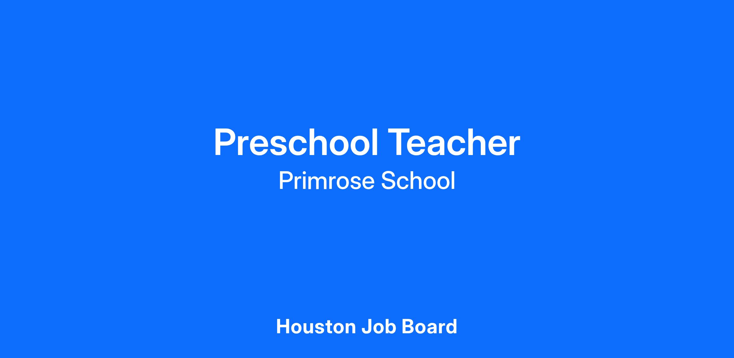 Role: Preschool ToddlerTeacher at Primrose School of Lakeshore- 16460 W. Lake Houston Pkwy Houston, TX 77044