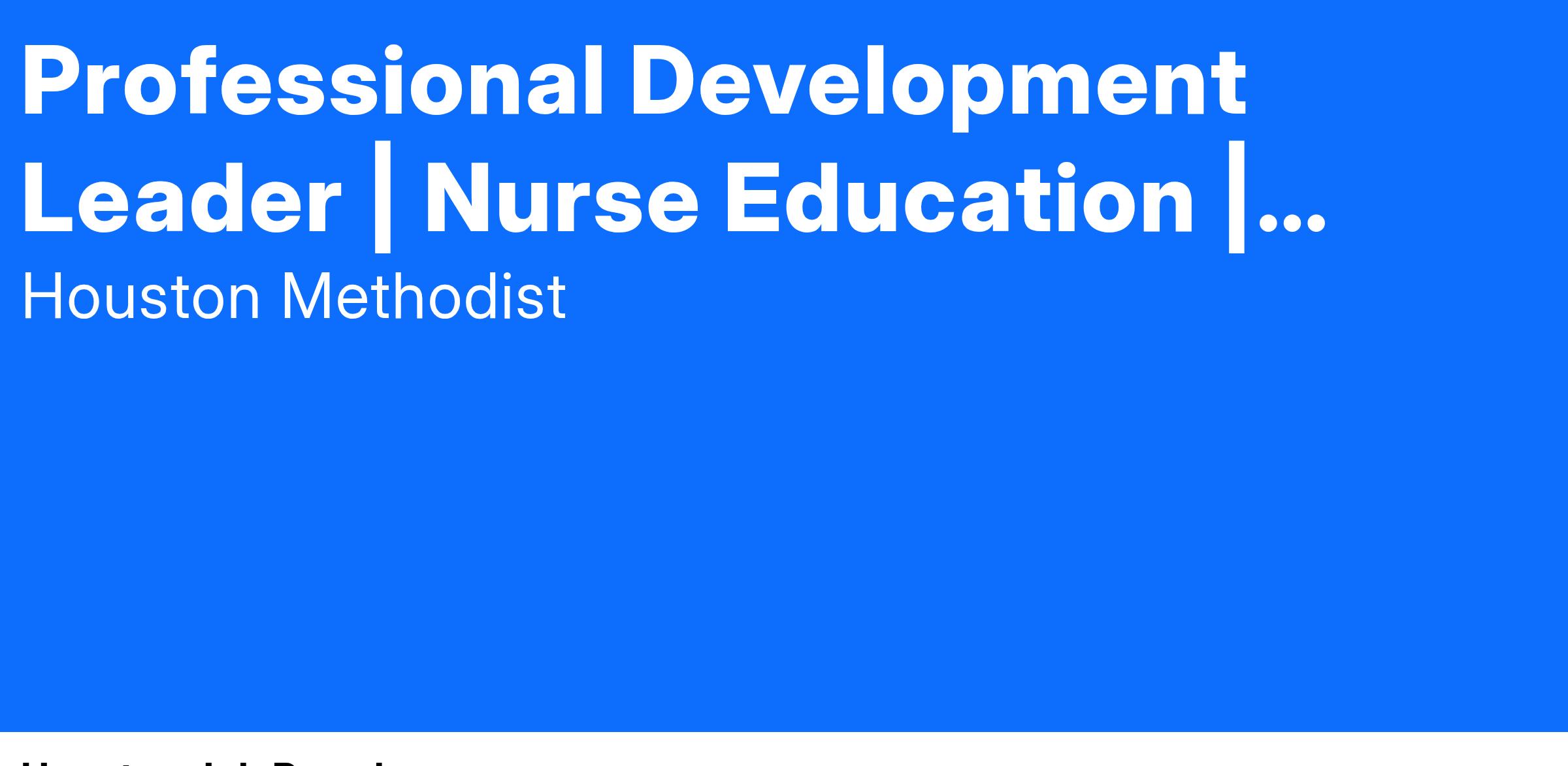 At Houston Methodist, the Professional Development Leader position is responsible for the development, coordination, implementation, evaluation and revision of activities/programs aimed at orientation, competency/skills validation, and facilitating ongoing professional growth of nurses and interprofessional colleagues across the entity/system. This position is also responsible for the facilitation of learning which incorporates educational design including the use of technology and simulation, adult learning principles, change management, and evidence-based practice into curriculum development in accordance with Houston Methodist policies and procedures and applicable regulatory requirements. The Professional Development Leader position serves as a mentor and a resource/consultant across all units/departments/organization/system, as assigned.