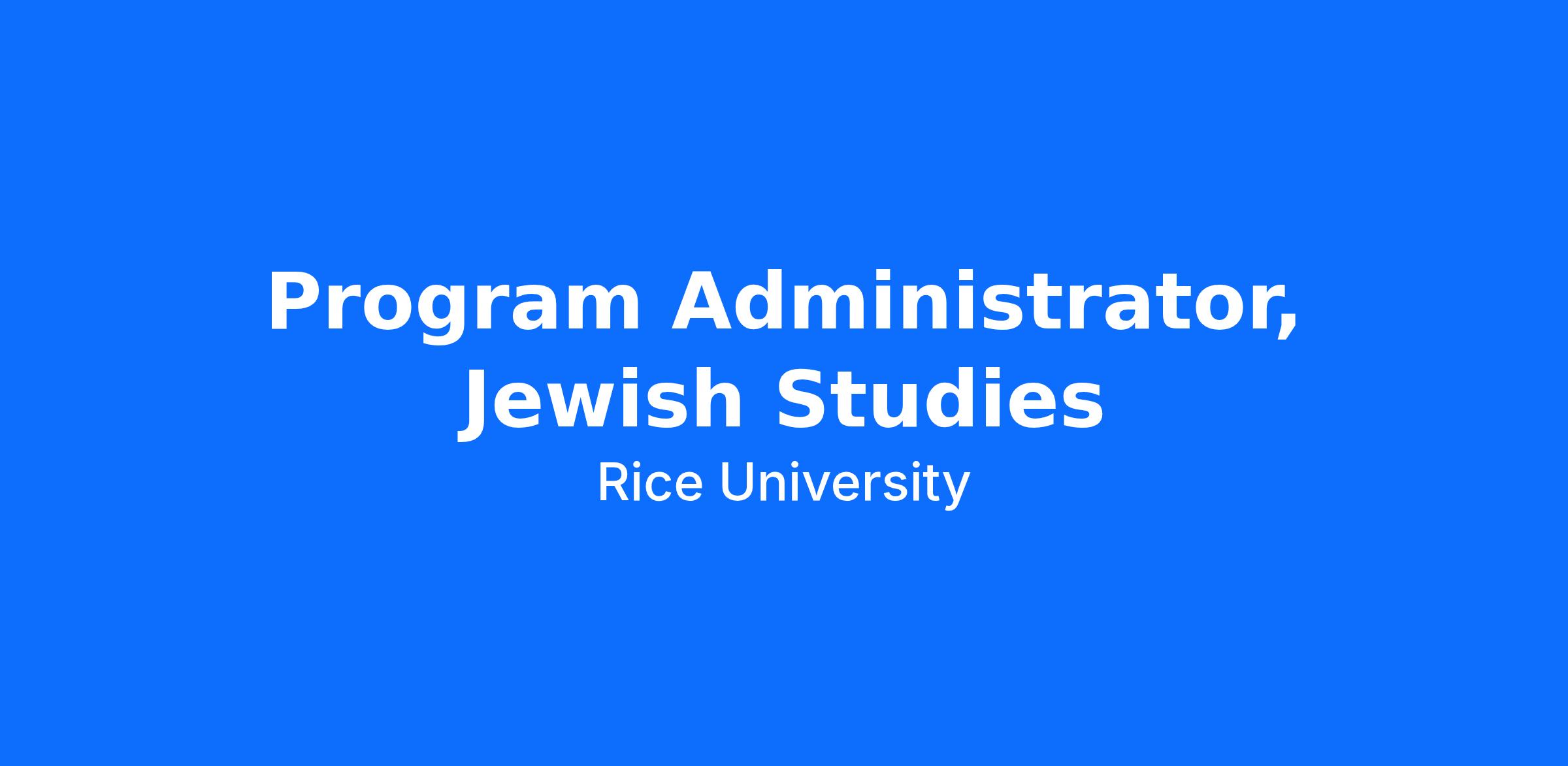 Under supervision of the director, the program administrator in Jewish Studies is responsible for all front office functions and serves as the problem-solving point person for a variety of matters. They will also supports postdoctoral fellows, faculty and serves as the face of the department to all visitors. They will coordinate many of the administrative functions for the program, its faculty and special events activities, and maintains the program website. The program administrator interacts daily with faculty, students, visitors, other university staff, and various individuals and organizations outside Rice University.