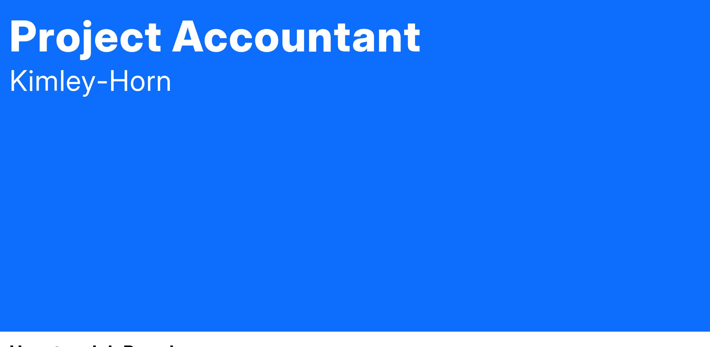 Kimley-Horn is looking for a Project Accountant to join our Houston, TX office! This is not a remote position.