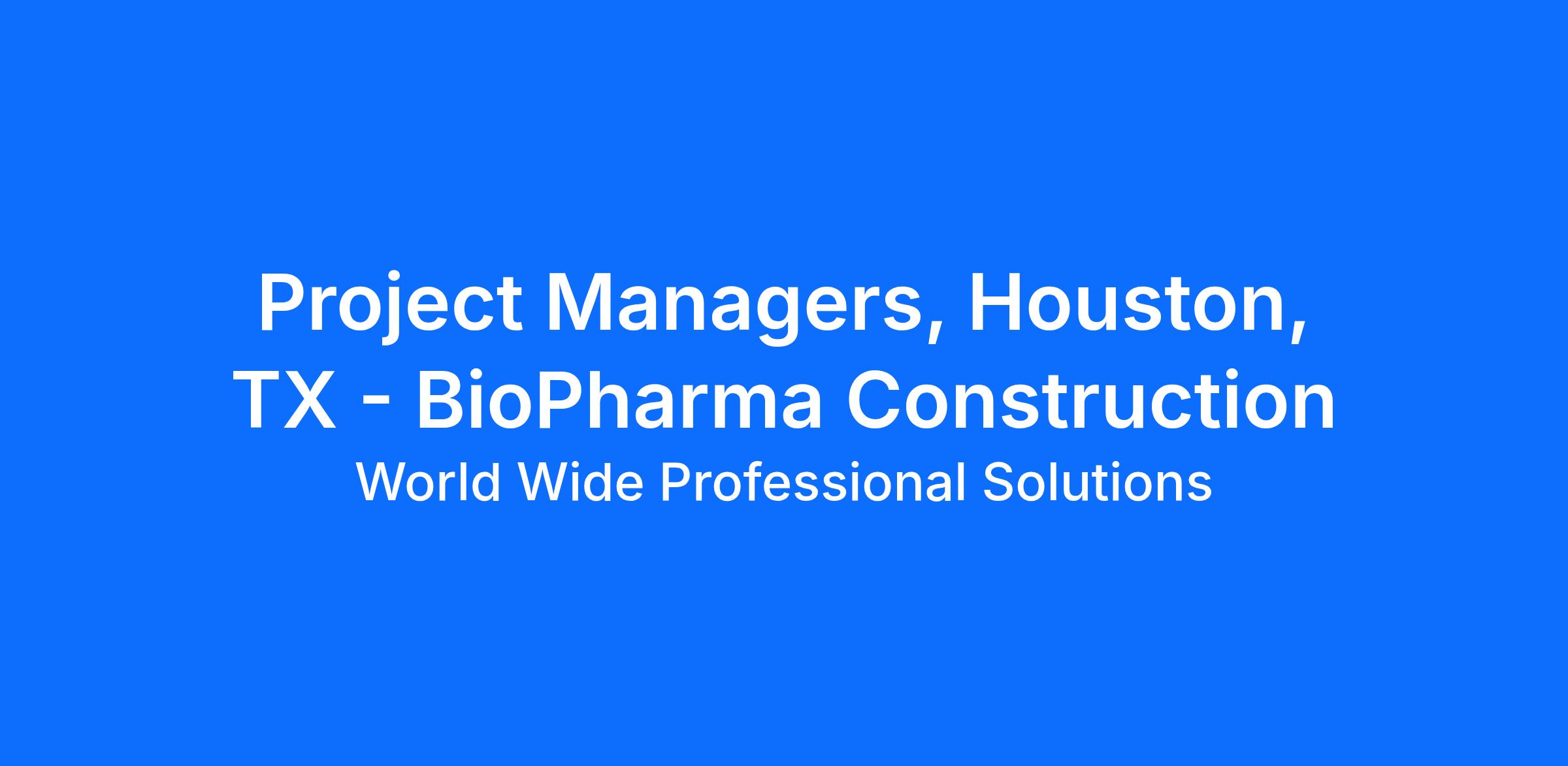World Wide Professional Solutions (WWPS) is seeking experienced and driven Construction Project Managers across multiple disciplines to support a large-scale, confidential BioPharma manufacturing facility project in Houston, TX.