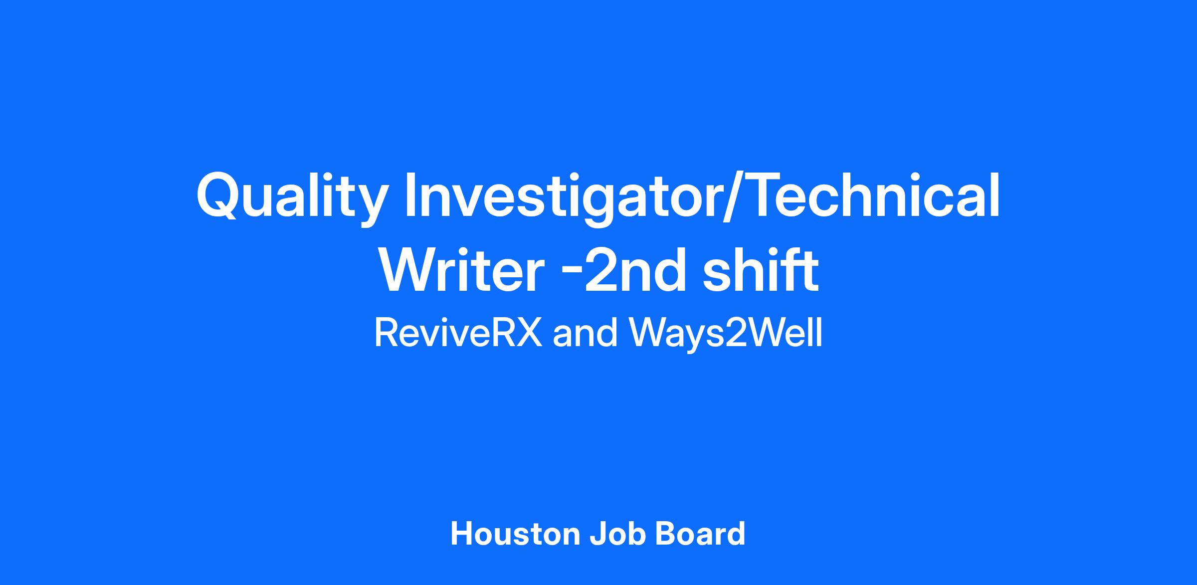 Job Title: Quality Investigator/Technical Writer -2nd shift